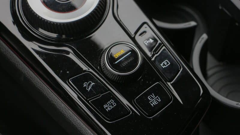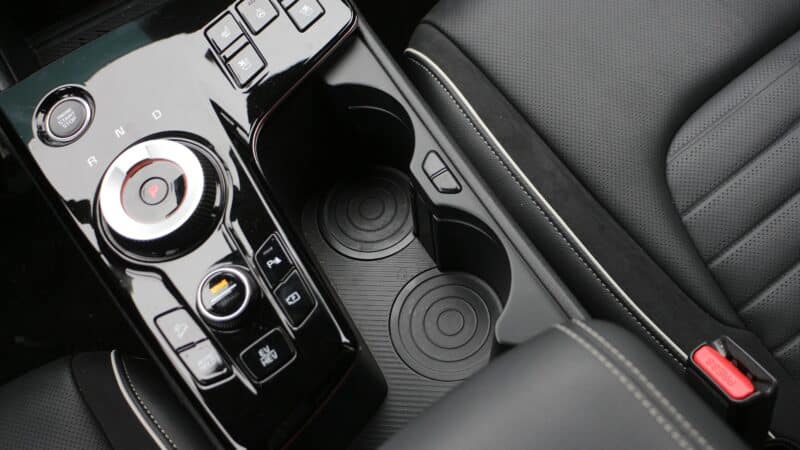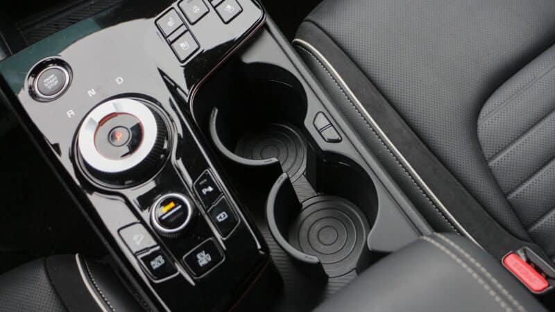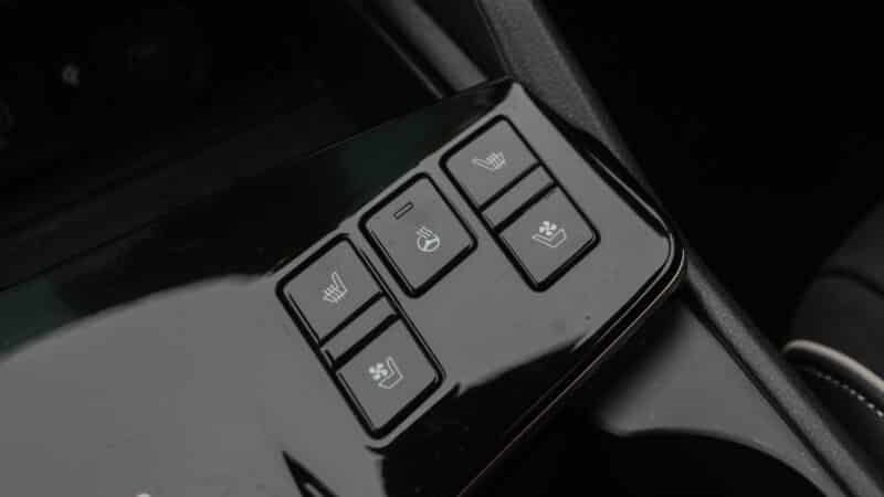 A két ülés közötti konzolon is ügyesen rendezték a gombokat, habár a zongoralakk burkolat kényes, főleg, hogy itt található az indítógomb, a hatfokozatú automata váltó tekerője, de a kormány- és ülésfűtés kapcsolói is, a két pohártartóról már nem is beszélve. Telefontöltő pad is található a tesztpéldányban, a műszerfalba süllyesztve, többek között egy USB-A és egy USB-C bemenet társaságában.