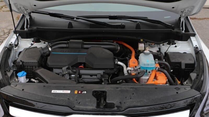 Bár a tesztpéldány még zöld rendszámmal járt nálunk, ám idén - ahogy az összes PHEV - már ez is csak fehér hátterű hatósági jelzéssel kerülhet forgalomba. A konnektoros hibrid Sportage szívét 1,6 literes, négyhengeres benzines erőforrás adja, amely önmagában 160 lóerőre és 265 newtonméterre képes. Ehhez társul a 91 lovas villanymotor 304 newtonméterrel. A rendszerteljesítmény 245 lóerőre, és 350 newtonmétrre jön ki. A PHEV kivitel minden esetben hatfokozatú automata váltóval és összkerékhajtással készül. A hajtásláncot pedig a 13,8 kilowattórás akkumulátor teszi teljessé.