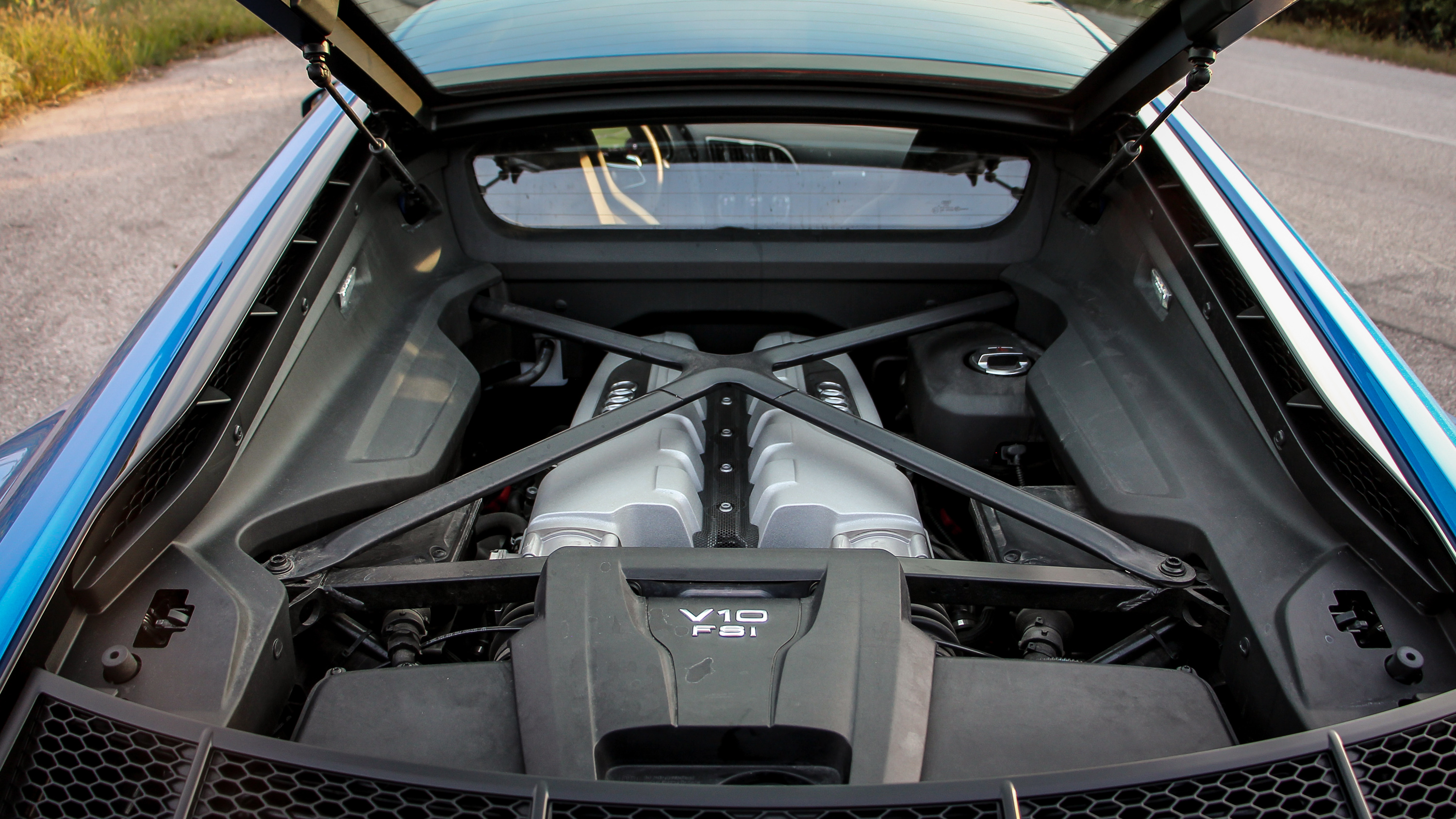 Az ablak mögött ott figyel az az 5,2-es V10-es szívómotor, amit Győrben szerelnek össze hazánk ügyes kezei,