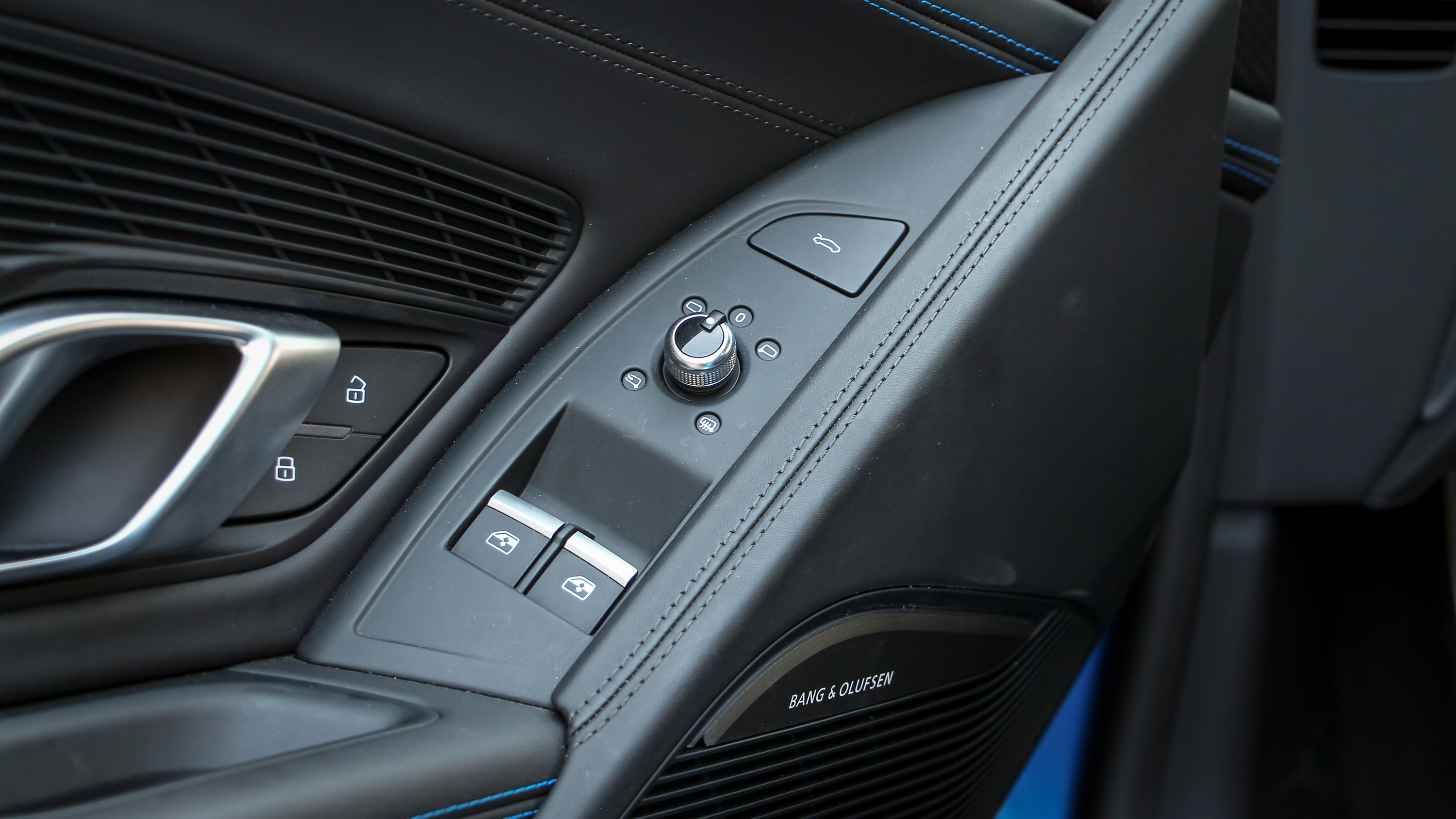 Hatalmasak az ajtók, a kilincseket meg trükkösen az övvonal éle/alá rejtették, imádni való megoldás. Nincs puccos fölfelé nyitás, teljesen hagyományosan nyílik, a beülés érdekessége csupán maga az ülés magassága, ami lényegében a földön van. Az R8 hasmagassága úgy 11 centiméter, egy telefon nem fér be alá állítva, ami 13,8 centiméter magas. Az üléspozíció rendkívül mély, mégsem érezzük úgy, hogy egy katlanban ülünk, mint például az AMG GT-ben. A rövid, alacsony orr nagyon jó kilátást eredményez előre, a jobb hátsó holttérben viszont gond nélkül elfér egy Grande Punto, ez talán az egyetlen kritikus pont. Ezen kívül minden irányban jól belátható, a parkolás is egyszerű, már-már túl hamar szokható a vezetése. Valahogy annyira természetes benne az üléspozíció, a kezelőszervek és a kilátás, hogy egy pillanatig sem érezzük azt, hogy kényes, vagy küzdelmes vele akár a városi közlekedés.