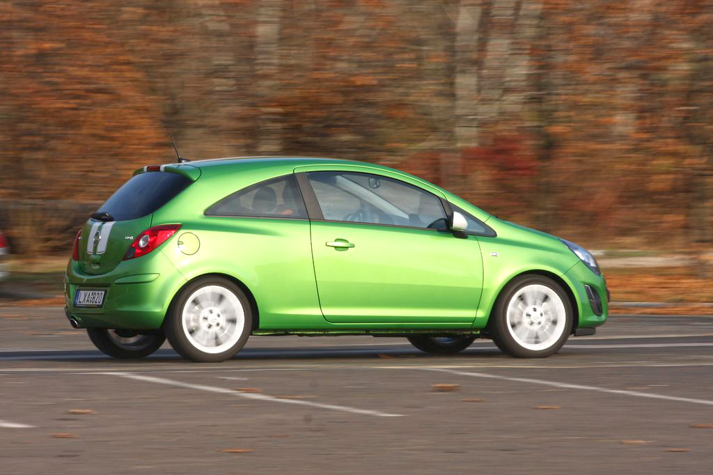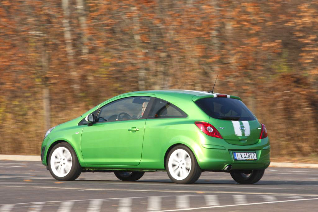 Az említettek nélkül a háromajtós Corsa csupán azzal tűnne ki a tömegből, hogy nem ötajtós, ami ránézésre tény, hogy fiatalosabbá varázsolja az autót, viszont nem kis áldozatot kér a praktikum oltárán. A hatalmas ajtók tompának nehezen nevezhető puffanással csukódnak, cserébe – persze óriási helyigénnyel – elképesztő szélesre nyithatóak. Az elölről/előre ki/beszállás remek, a hátulról/hátra művelet bezzeg mutatványszámba megy, míg az ülőlap és a támla mozgatása kétlépcsős folyamat. Elöl maximális, hátul kompromisszumos kényelemben utazhat két felnőtt - a második sorba 180 centinél nagyobbak csak fodrász előtt és lehetőleg rövid lábakkal másszanak be.