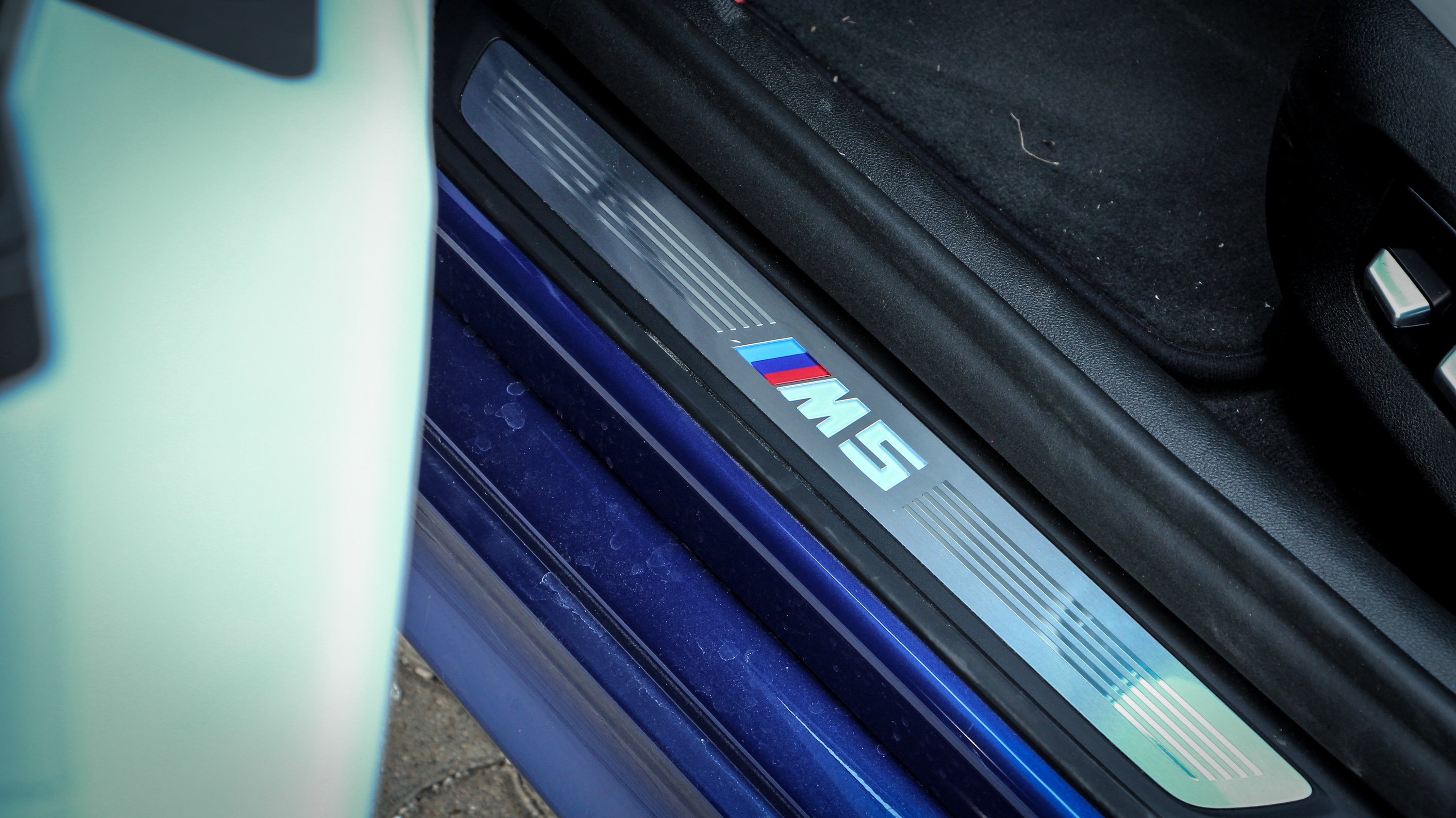 Két hangsúlyos él az alumínium géptetőn, ami továbbfut a karbon tetőlemezen, kiszélesített sárvédők, óriási légbeömlők, ezek teszik egyértelművé az M5-öt