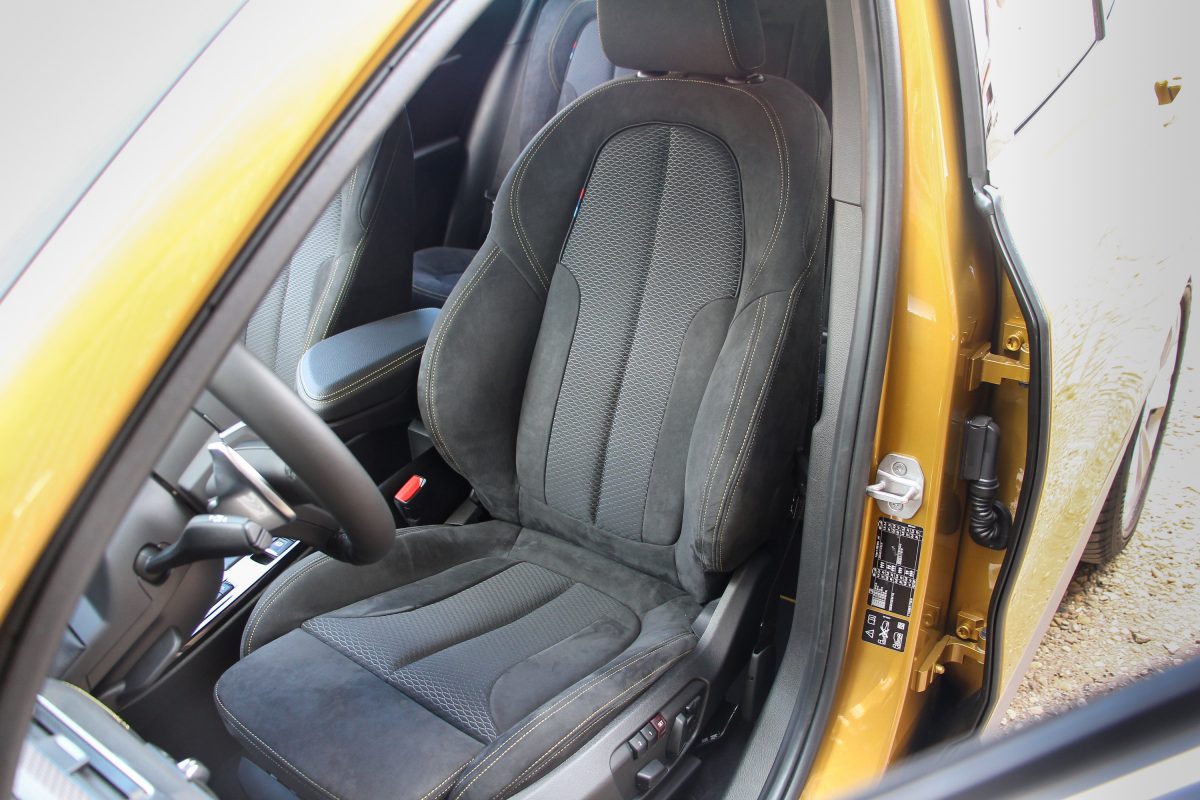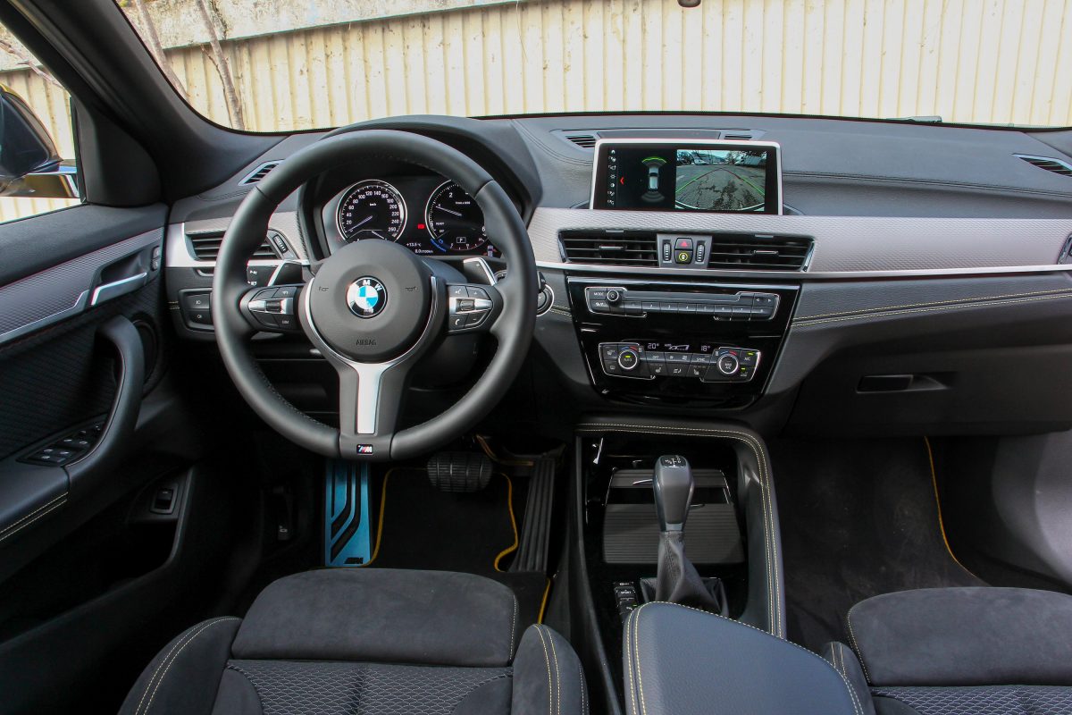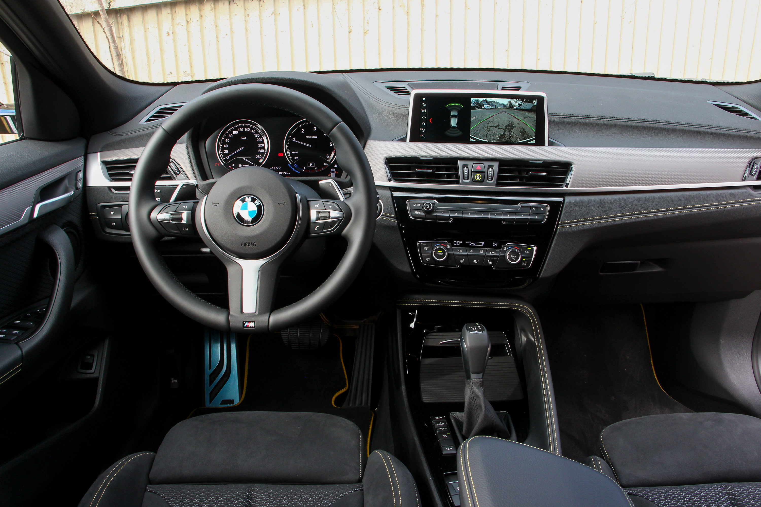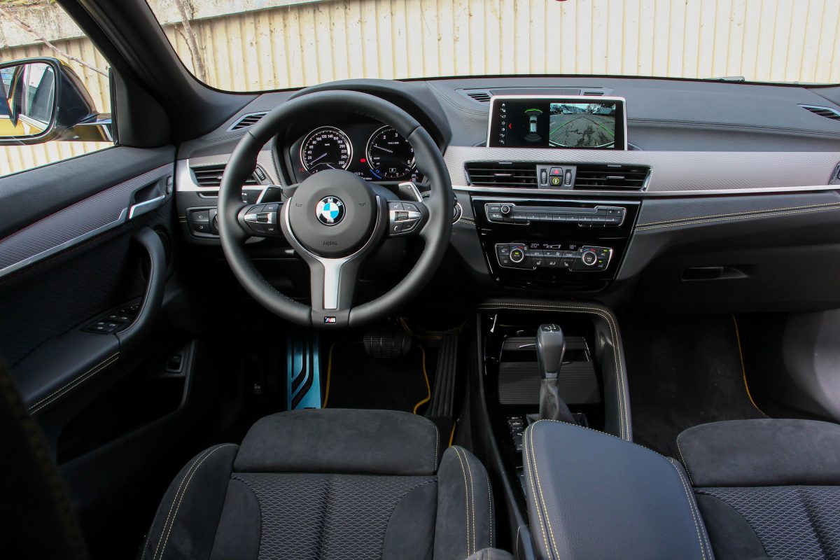 A vadonatúj X2 4,36 méteres hosszával 7 centivel rövidebb még az X1-nél is, s gyakorlatilag ugyanennyit húztak a magasságából is. Csomagtere 35 literrel szerényebb, utastere nyilván nem sokkal, de a bemutatón vezetett sportüléses tesztautó kalodaként tartott, így aztán elöl semmiképp sem érződött szellősnek. Hátul tágasabbnak tűnt, normál méretű felnőttből gond nélkül befér négy példány is. Elöl alapvetően rendben vannak az anyagok, de azért a műszerfal felső öntött varrása csöppet tucatautós. A beltér formái kellően BMW-sek, a kivitelezés viszont, kövezzenek meg, olyan, mint egy jobban felszerelt tucatautóban, mondjuk Opelben, Renault-ban, amihez persze az is hozzájárult, hogy utóbbiak szépen felzárkóztak az elmúlt években.