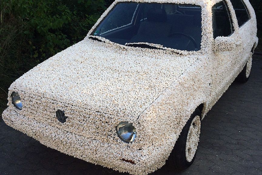 Légy egyedi, fejezd ki magad az autóddal (is)! Meg persze a telefonoddal, a ruháddal, a frizuráddal! Hiszen egyéniség vagy, vagy nem? Dehogynem, hisz' mindenki az, s közben zabáljuk a fogyasztói társadalom áldásait. Lényegében akkor is, ha épp azt kívánjuk kifejezni, hogy mi nem a mainstream, nem a nagy átlag vagyunk, hiszen mi aztán nagyon különbözőek, a legnagyobb egyéniségek vagyunk. A világ már csak ilyen, s most itt van egy újabb egyedi autó, egy pattogatott kukoricába rejtett Volkswagen Golf, amit Lucas Danehnl, Braunschweig művészeti egyetemének hallgatója épített meg szolid egy év alatt egy hőlégfúvó, meg persze némi ragasztó segítségével.[BANNER type="1"]