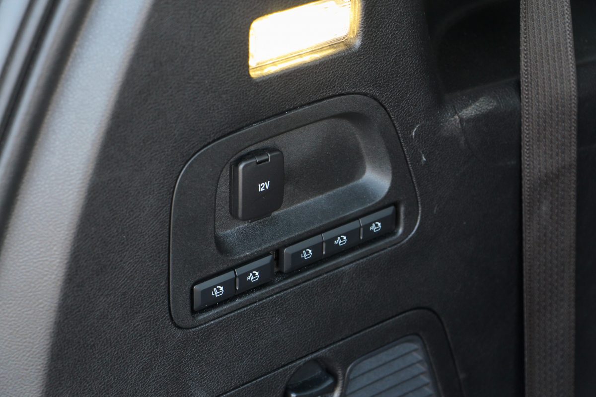12 V-os csatlakozó természetesen a csomagtérbe is jutott, a klíma lehet háromzónás, a második üléssor elé még 220 V-os konnektort is kaphatunk