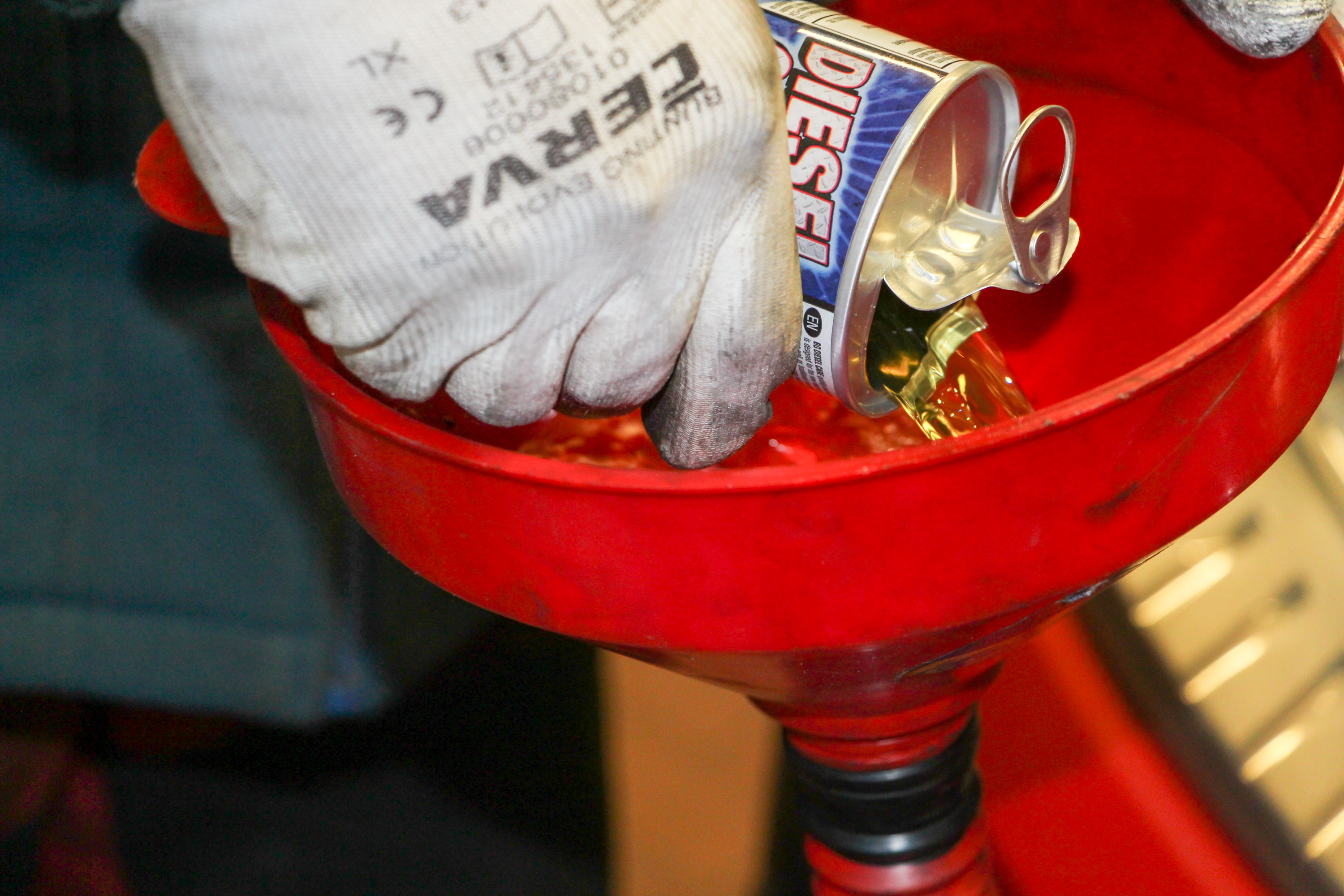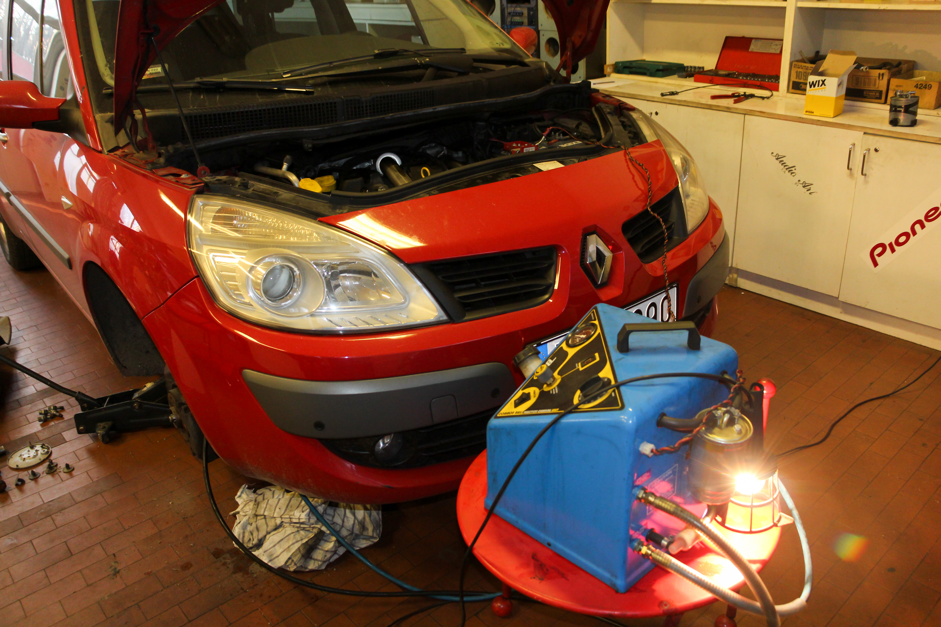 A rendszer az üzemanyagszűrőn keresztül, az autó akkumulátoráról táplált berendezéssel adagolja az üzemanyagot, a Renault Scénic esetén az előírt szűrőcsere miatt a jobb első kereket is le kellett szerelni
