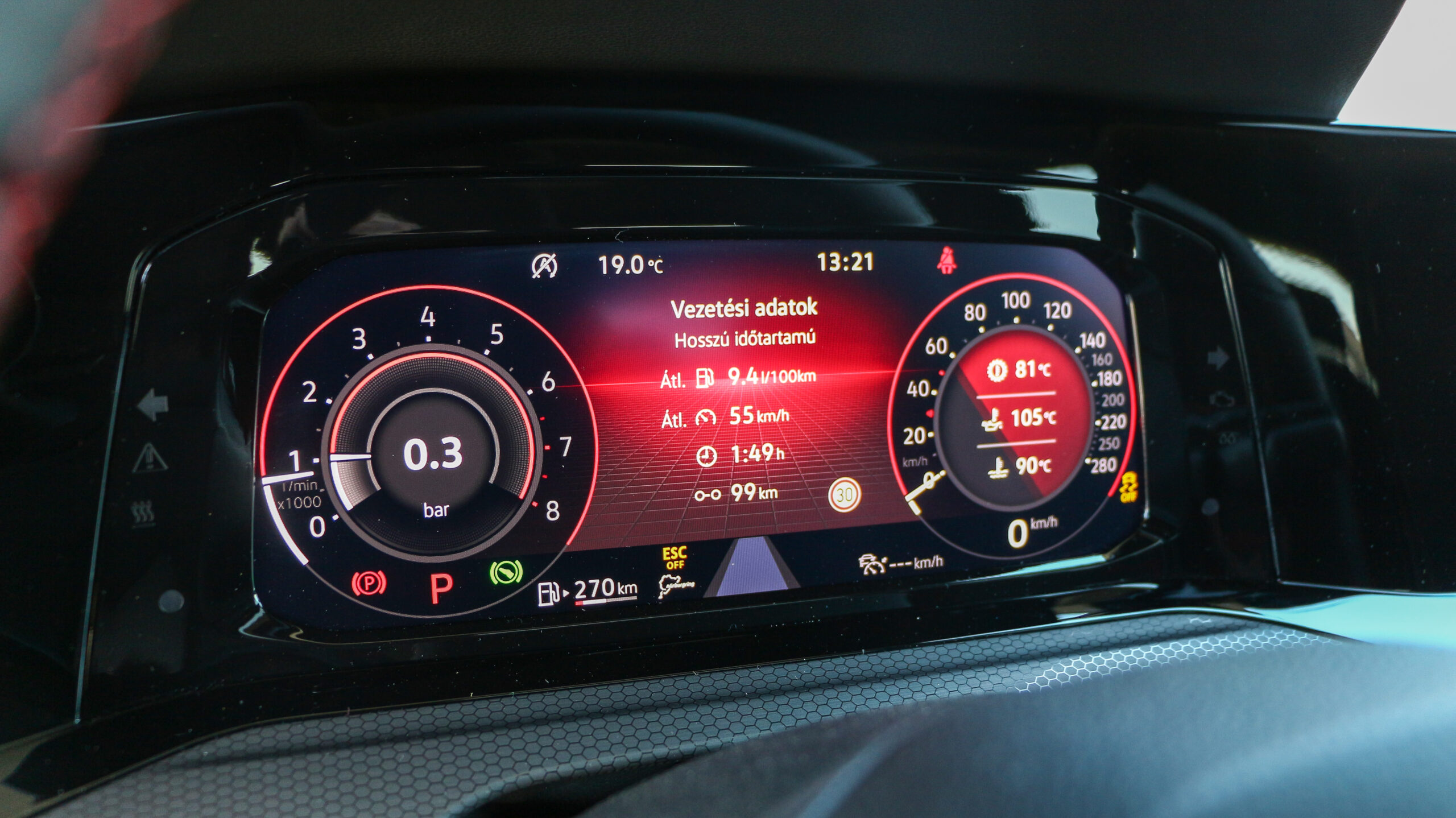 Jól tudták a mérnökök, hogy a hatalmasra puffadt új Golf tömege lesz a legnagyobb ellenség a sportosításkor. Bár a mai világban a jelenleg elvárt merevség és biztonság mellett az 1386 kiló egyáltalán nem nevezhető soknak, a régi korok könnyed guruló koporsóinak élményét igen nehéz átadni így. A 2,0 literes, négyhengeres TSI 300 lóerőre emelt teljesítménye és a már kétezres fordulattól elérhető 400 Newtonmétere csak gyorsításkor győzi le a fizikát, a kanyarokban a futómű és a fék a soros. Szerencsére ezzel sincs baj, a magyar útburkolatokon már-már túl feszes, a GTI-hez képest további 1 centivel ültetett futómű a kanyarokban, a hatalmas, furatos féktárcsák pedig a lassításoknál korrigálják az említett tömeget. Sokan mutogatnak a kibocsátási normákra is, nekik csak részben van igazuk: az EURO 6d-ISC-FCM besorolás ijesztőbbnek tűnik, mint amilyen valójában. Leginkább a DSG váltó hangolásán érződik az emissziós szigor, na meg persze a stíluson: ezt már nem lehet a lámpánál, üresben forgatva leszabályzásig bömböltetni, de legalább a négyezres limittel is durrog gázelvételkor.