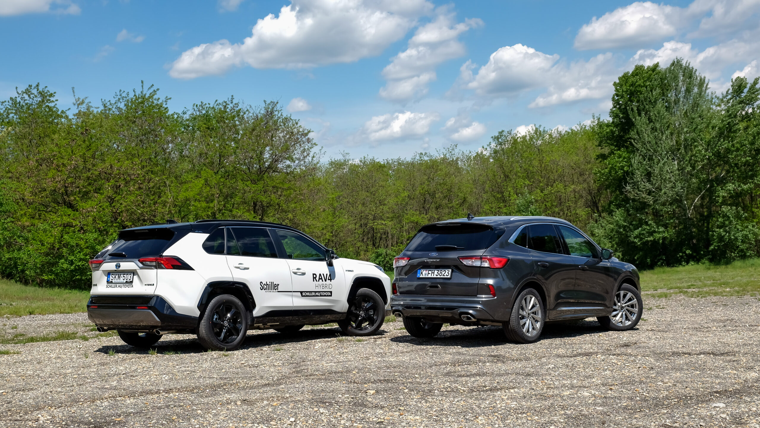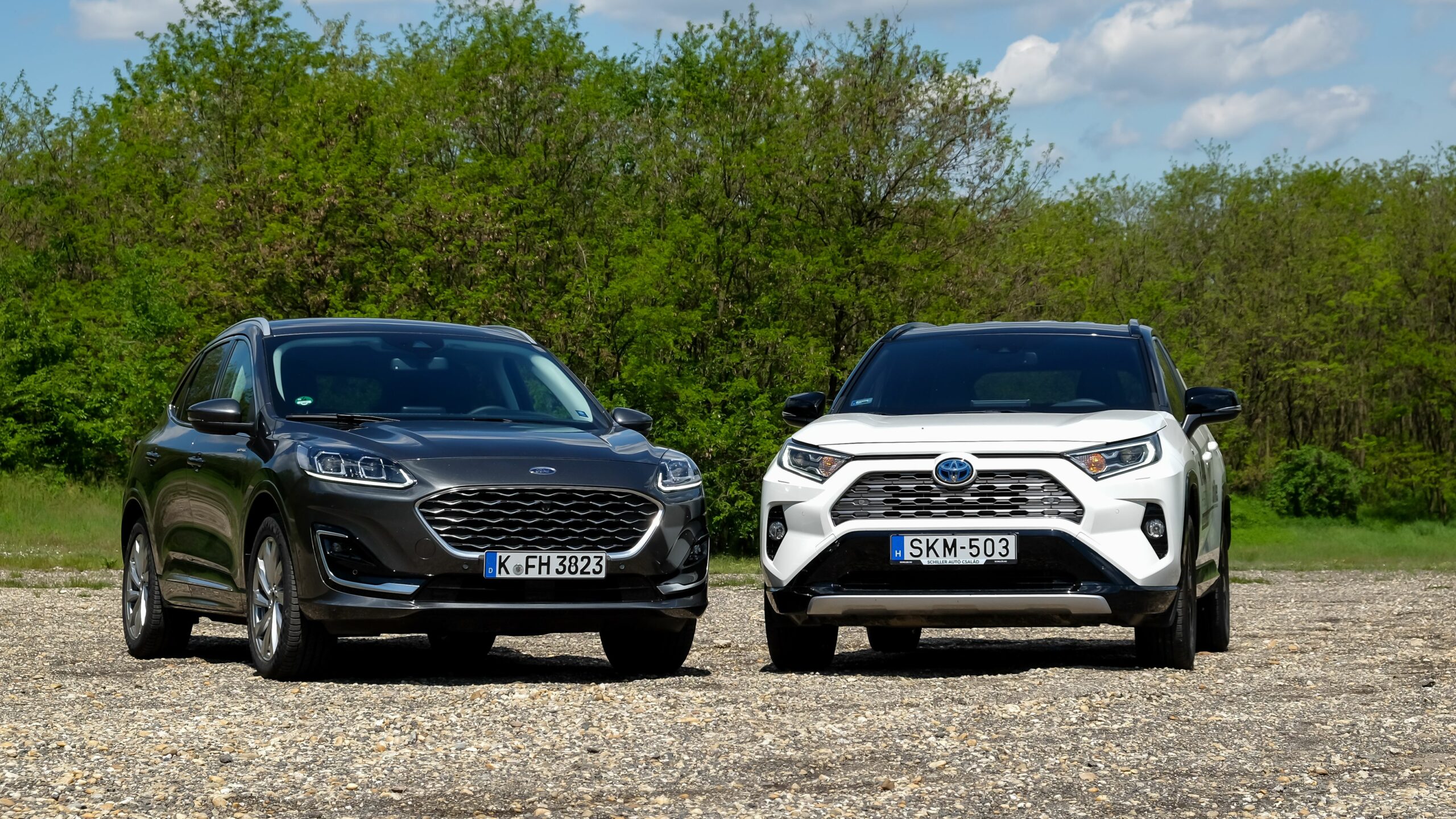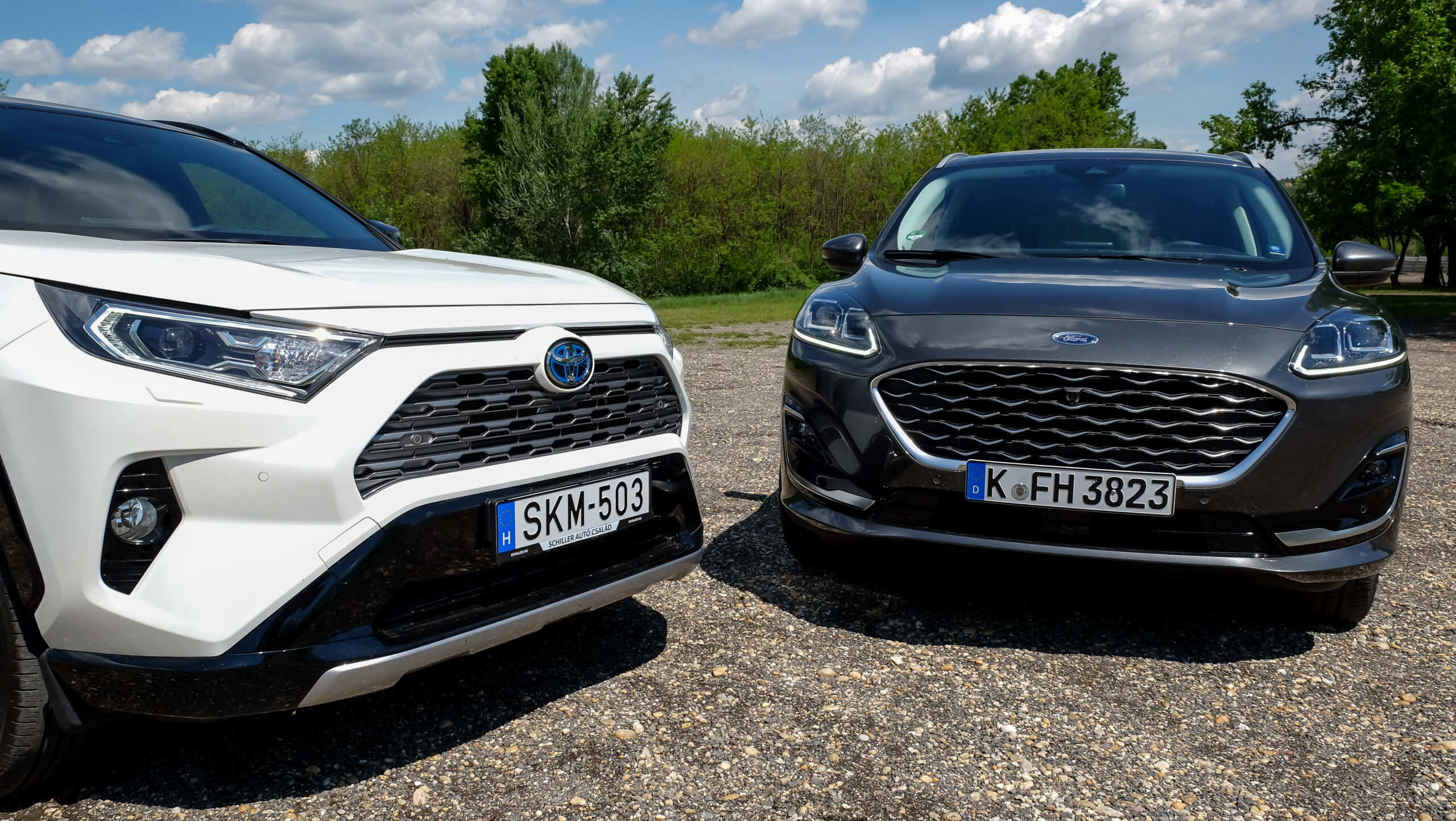Hasonló méret, hasonló hajtáslánc, hasonló ár, arcra mégis nagyon különböző a Ford Kuga és Toyota RAV4. Ezúttal mindkettőt "öntöltő" hibridként teszteltük