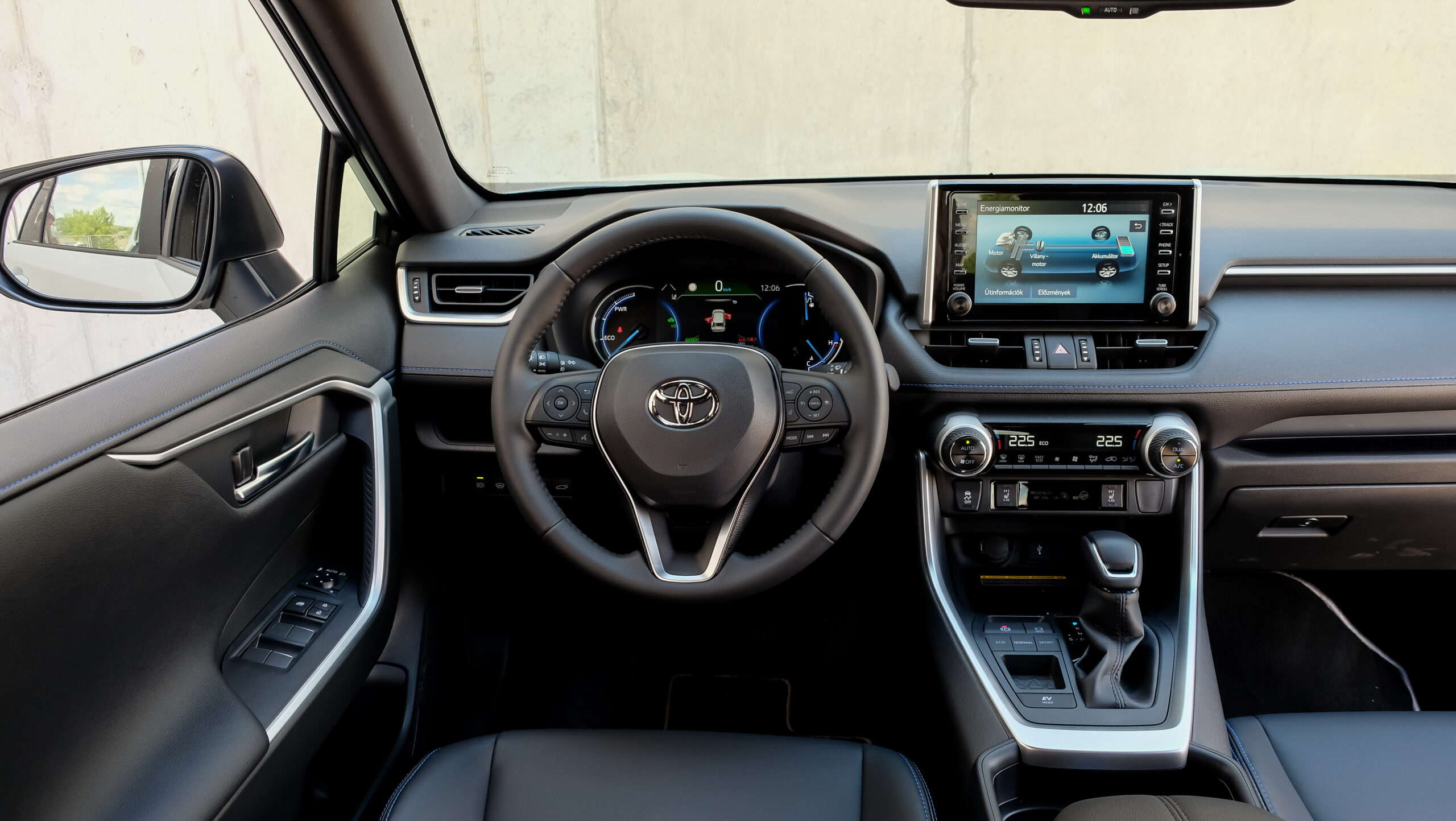 A RAV4 Selection ülései középen szövetborításúak, ami talán jobb is még, mint a teljes bőrözés, összességében itt jobb komfort és a térérzet is
