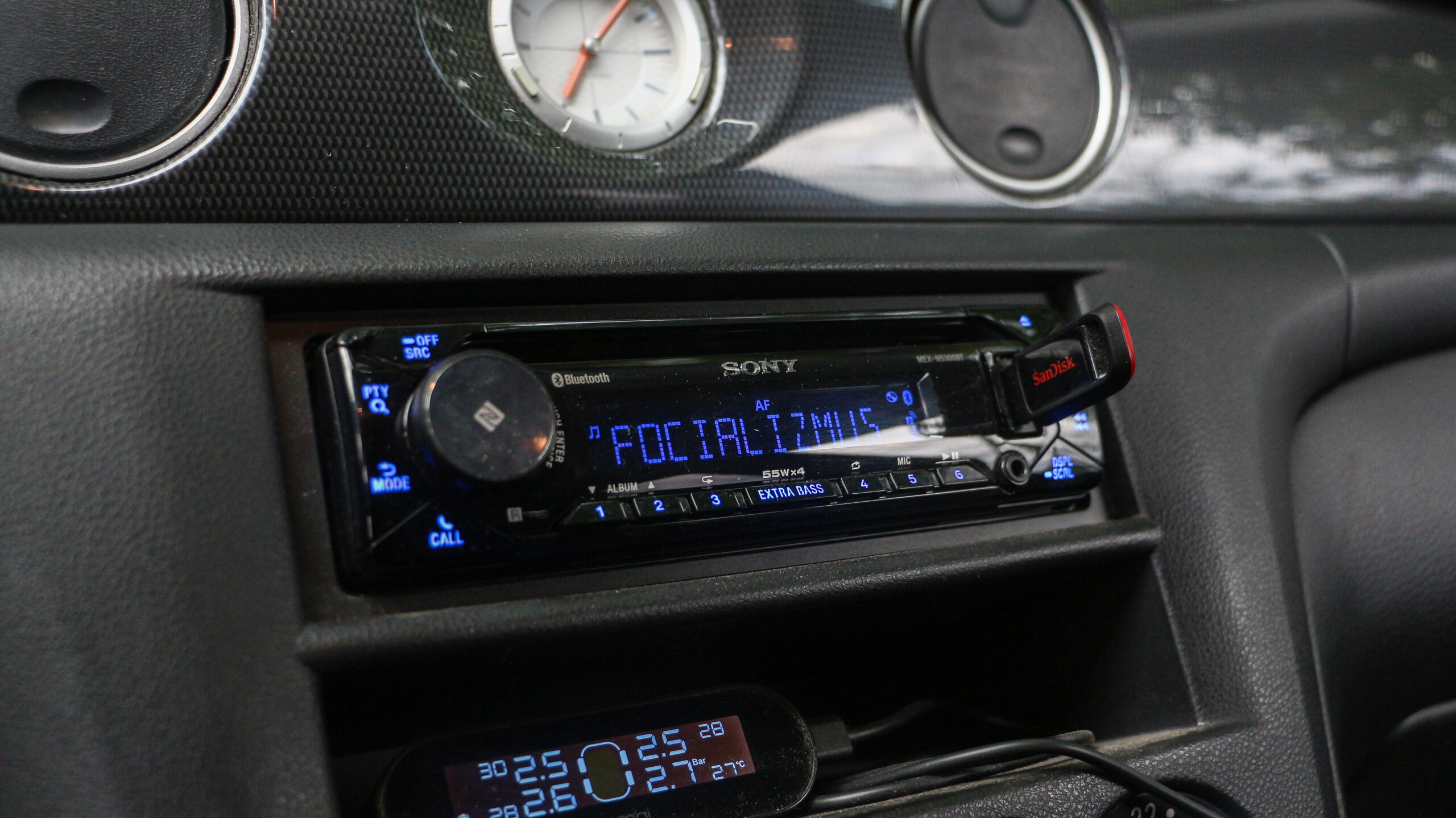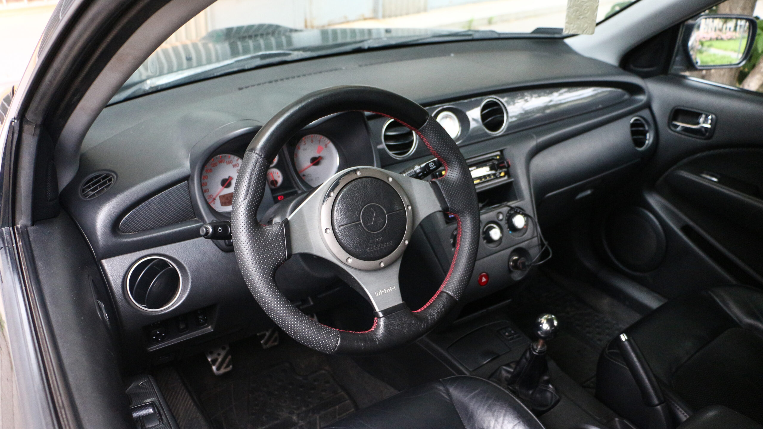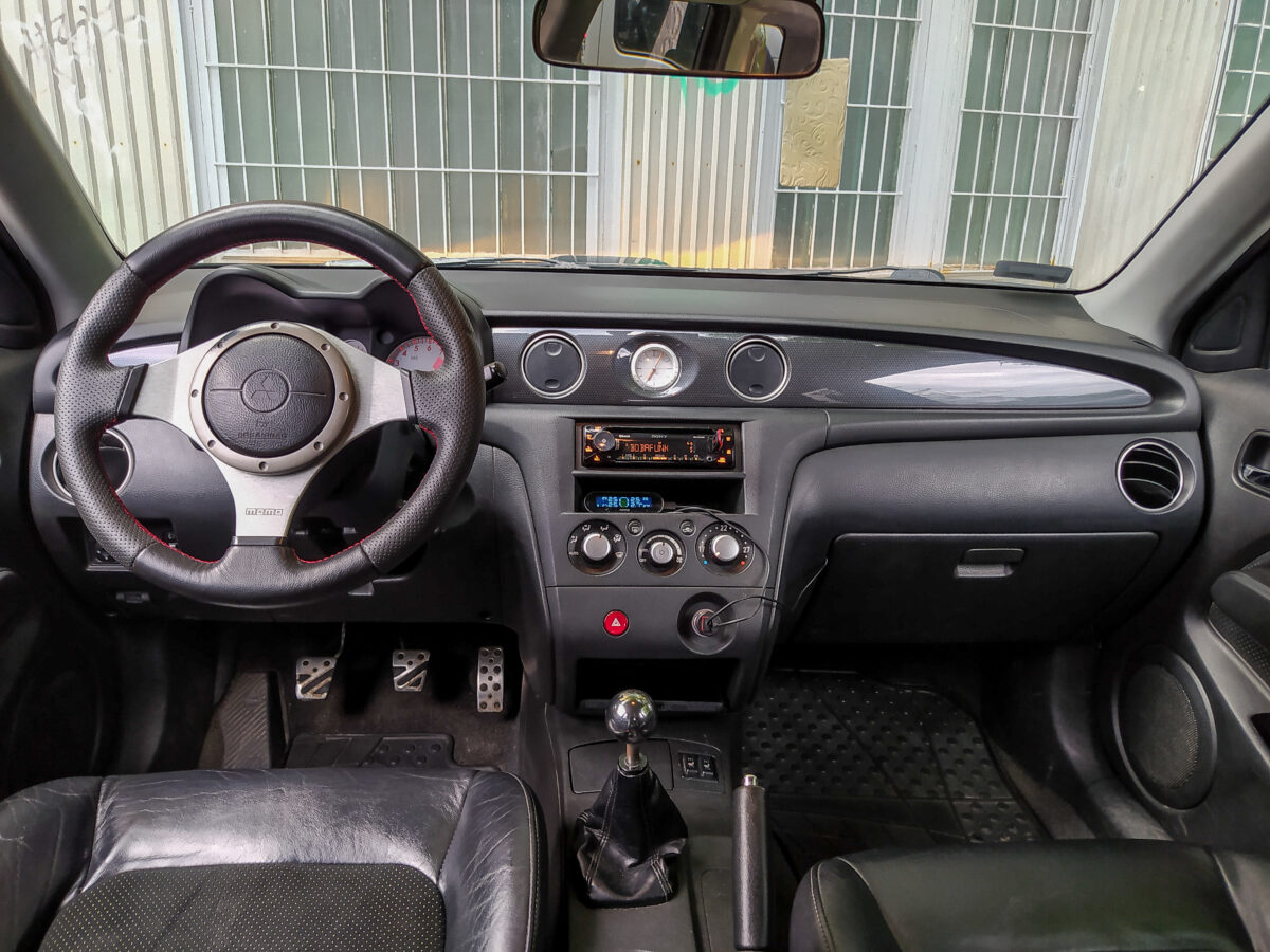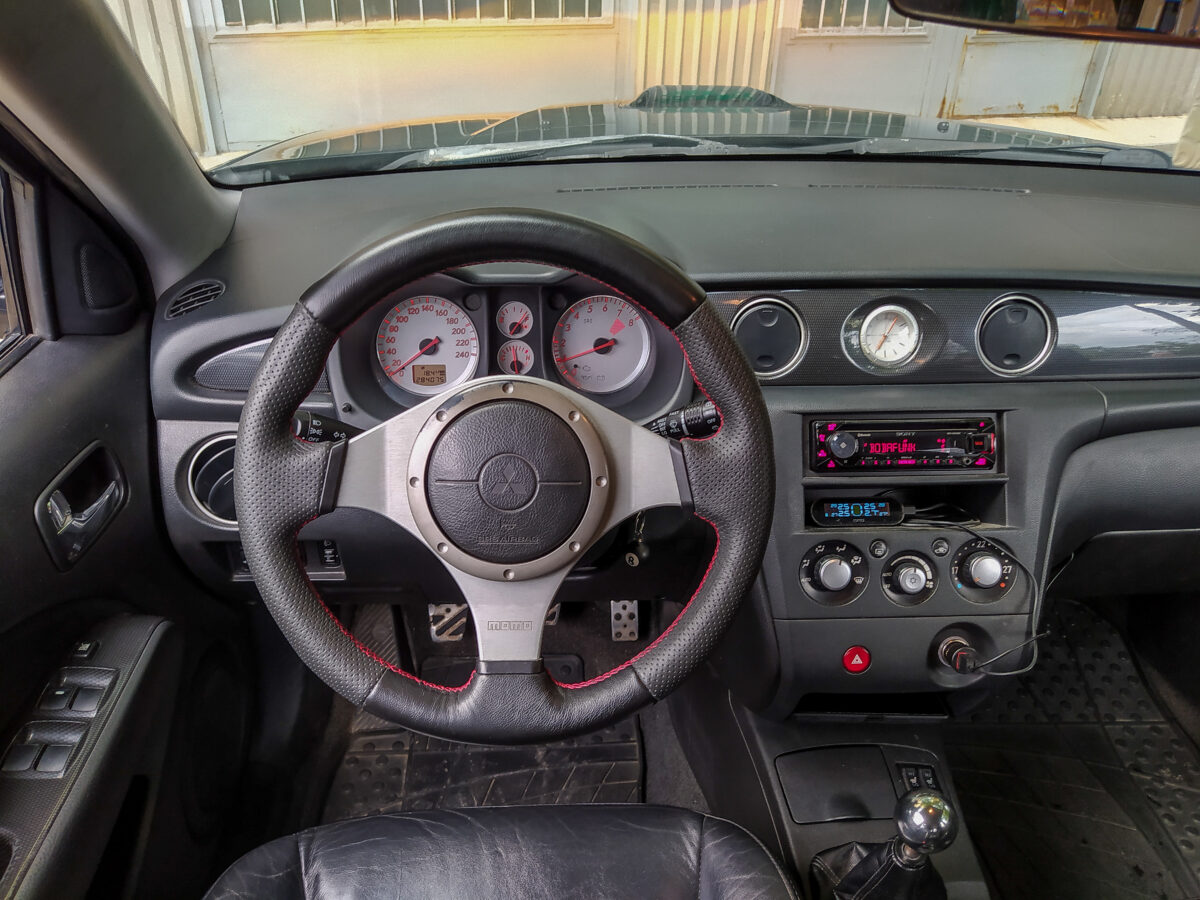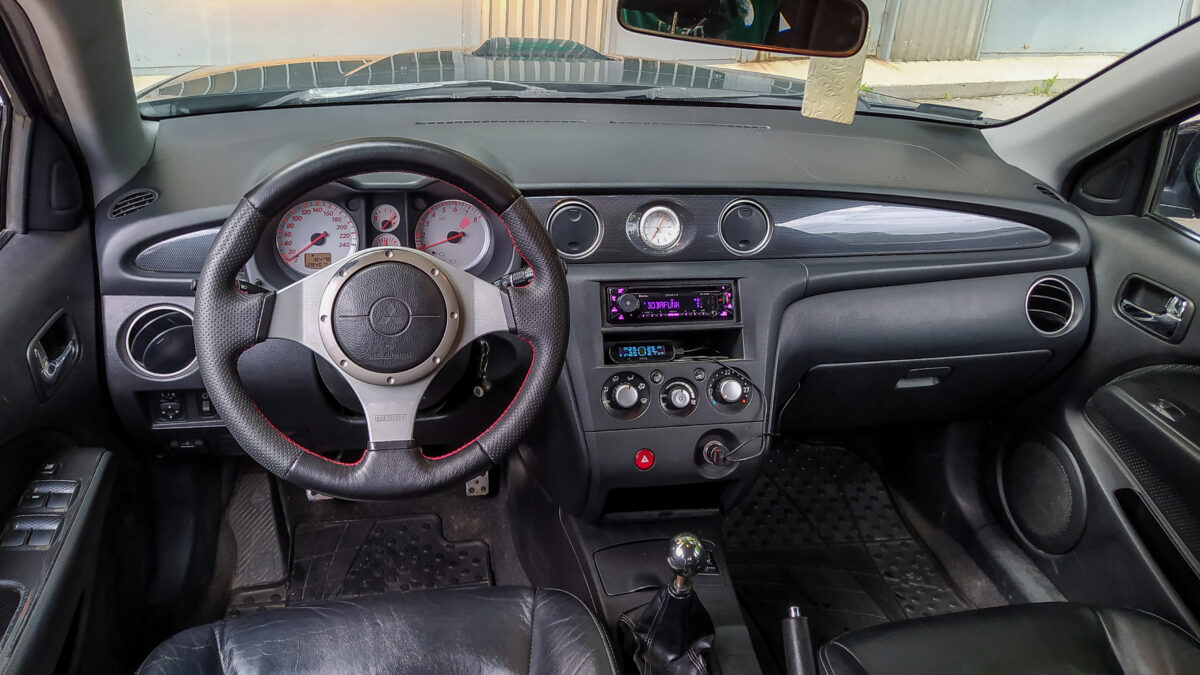 A kormány és a rádió nem gyári, előbbi egy Lancer Evo alkatrész, míg az utóbbi csak egy hétköznapi, modern, utángyártott fejegység, korrekt hangzással