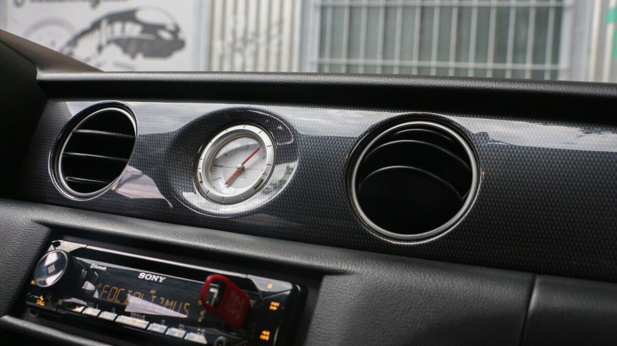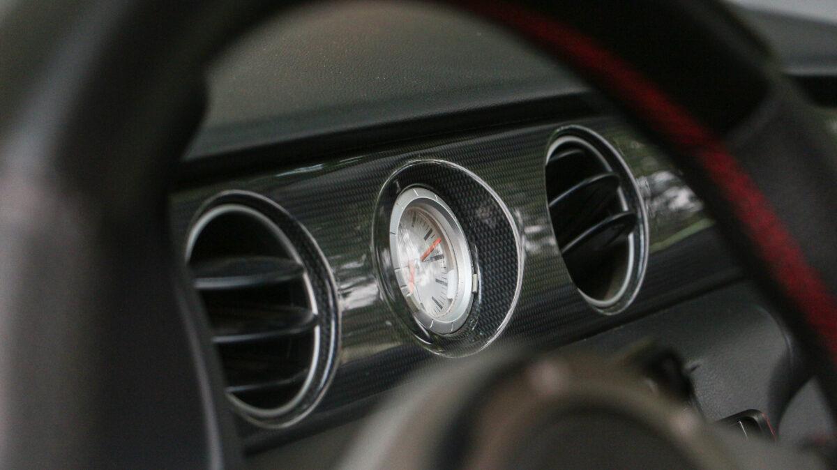 A karbonhatású dekorbetét és a két szellőző közé helyezett analóg óra csak elméletben hasonlít a jelenlegi Suzuki Vitarára, a gyakorlatban ez annál igényesebbre sikerült