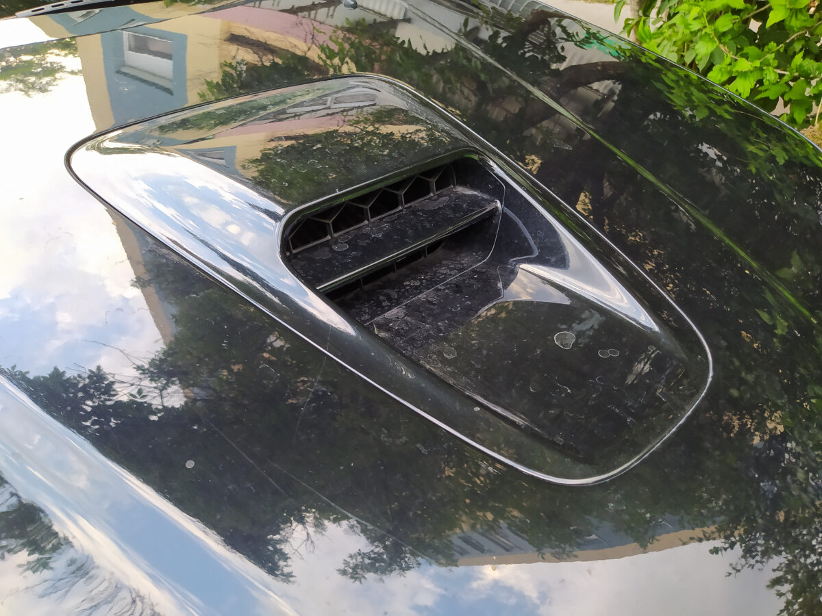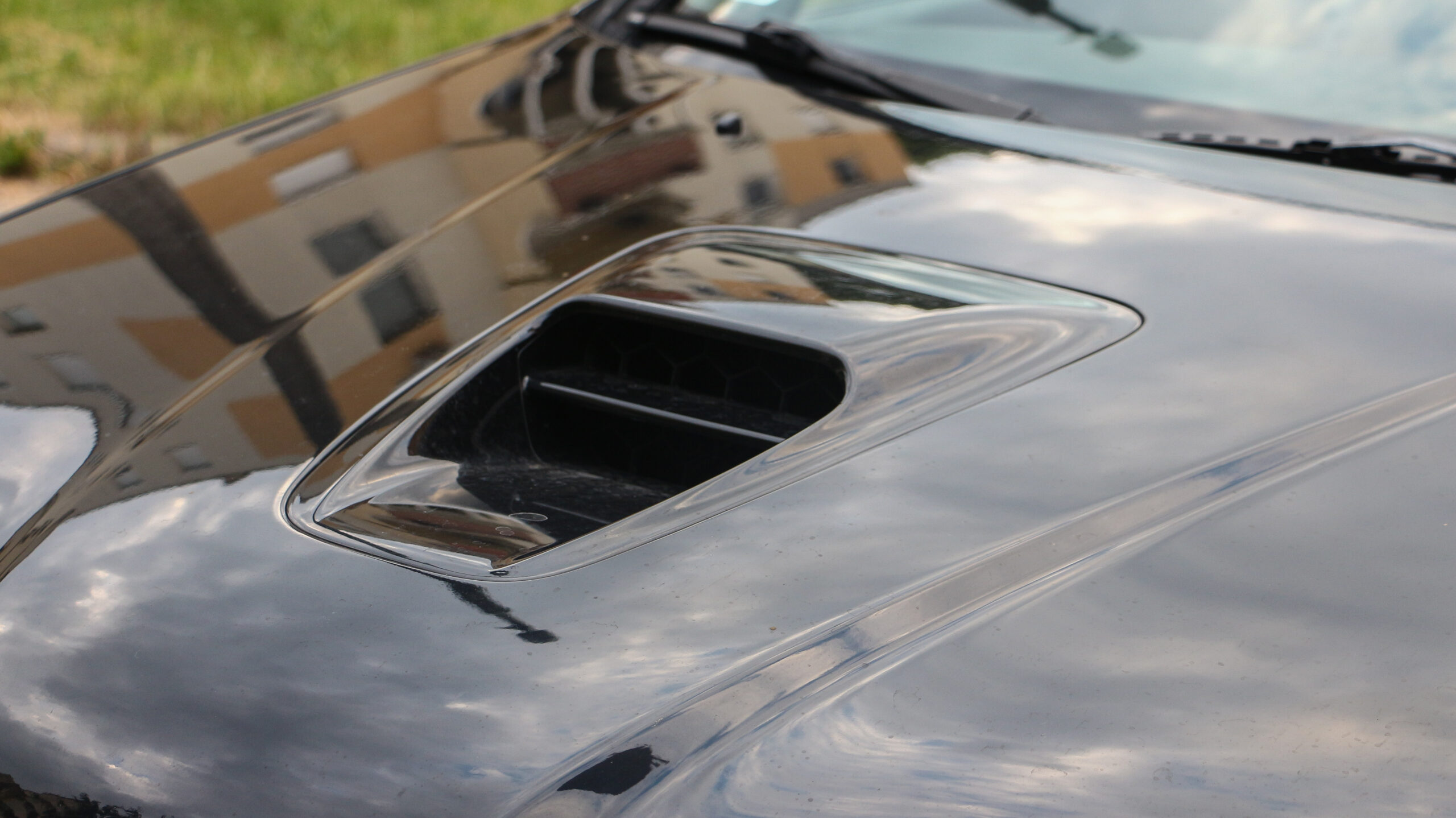 A féktárcsáknál látványosabb jele az erőnek a gépháztetőn található légbeömlő és a méretes kipufogó: mindkettő gyári, egyik sem dísznek került az autóra