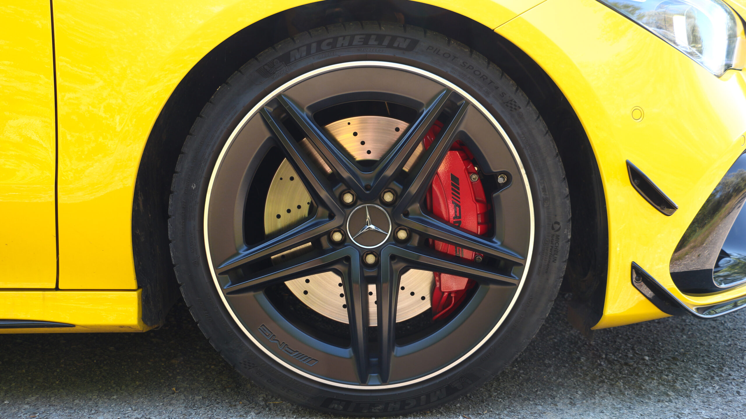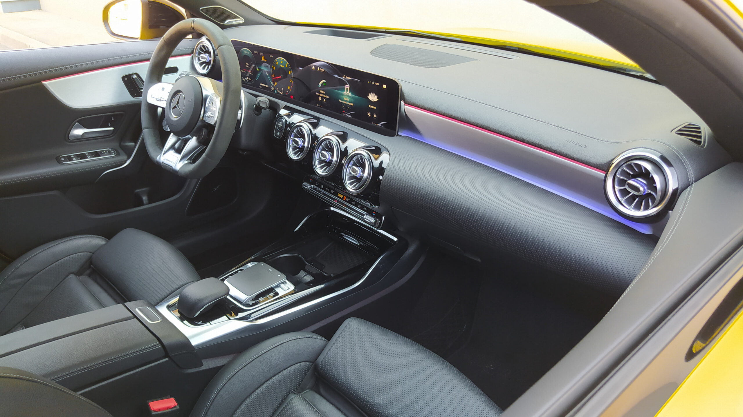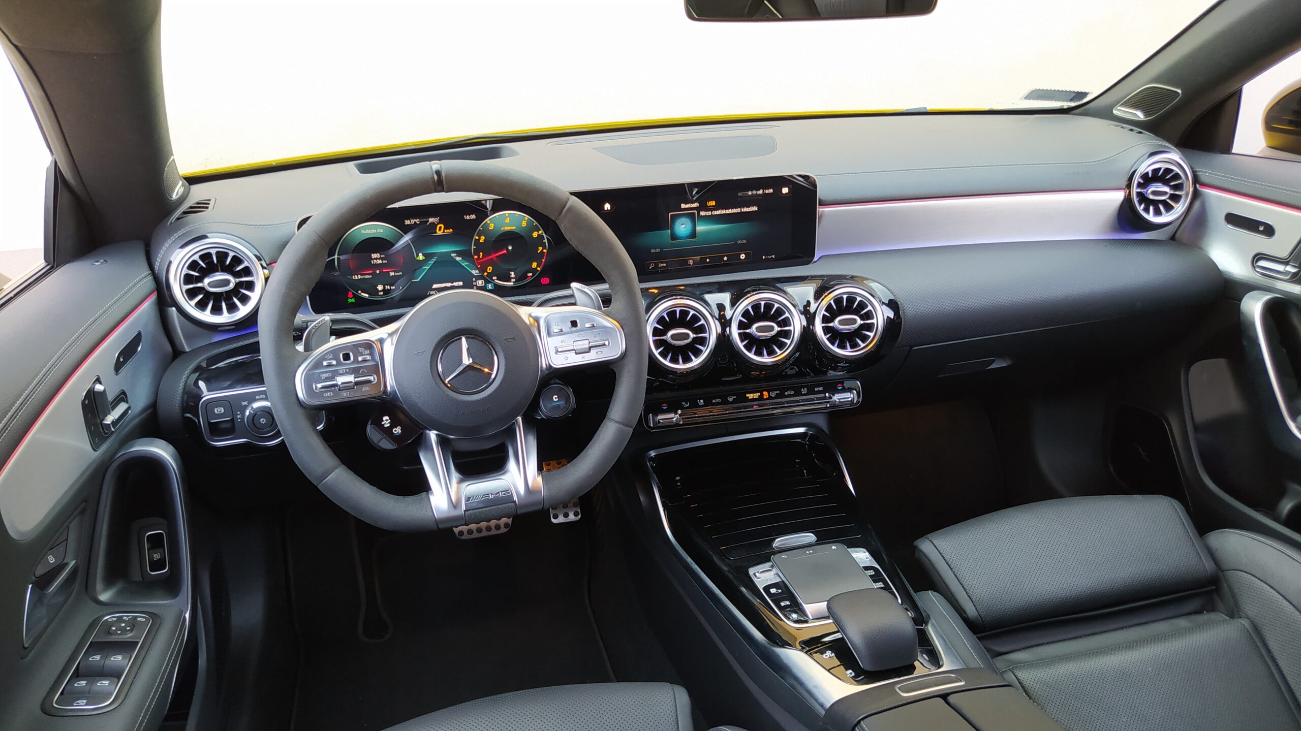 kanárisárga napsárga CLA AMG-t megláttam, rögtön eszembe jutott: a barátnőm mindig megkér, hogy a lehető legkevésbé feltűnő autót hozzam tesztre. Na persze nem azért villant be a gondolat, mert ez a Merci szolid lenne a maga 19 colos felnijeivel és a visszafogottságot hírből sem ismerő lökhárítóival, hanem épp az ellenkezője miatt. Gyönyörű gépszörny, mintha most szabadult volna egy Need for Speedből, ráadásul a teljesítménye még felül is múlja a küllem által támasztott elvárásokat. Az első benyomásom az autóról a kormány mögött pontosan ugyanaz volt, mint az összes utasomnak: nem értettem, hogy miért kell ennyi erő, de minden megmozdulásakor mosolyogtam. Csak persze nálam ott motoszkált a rettegés is, hogy ezt biza meg is kell tartani és meg is kell állítani, miután megmozdult, ha úgy hozza a szituáció. A legtöbb erős autónál megvan ez az érzés, és addig jó, amíg ez meg is marad: egy motoros jóbarátom mondta, hogy azért kell nagyobbat vennie, mert a jelenlegitől már nem fél - ez a CLA már ugyanez a kategória.