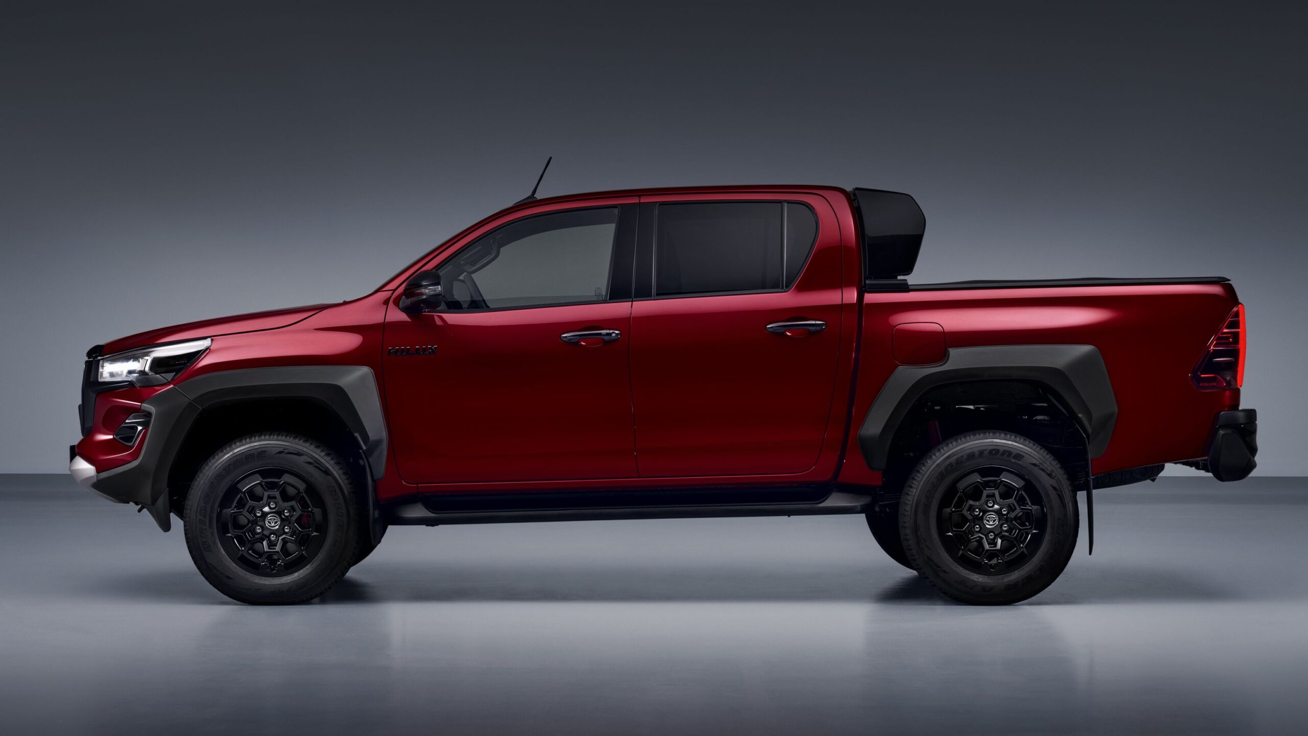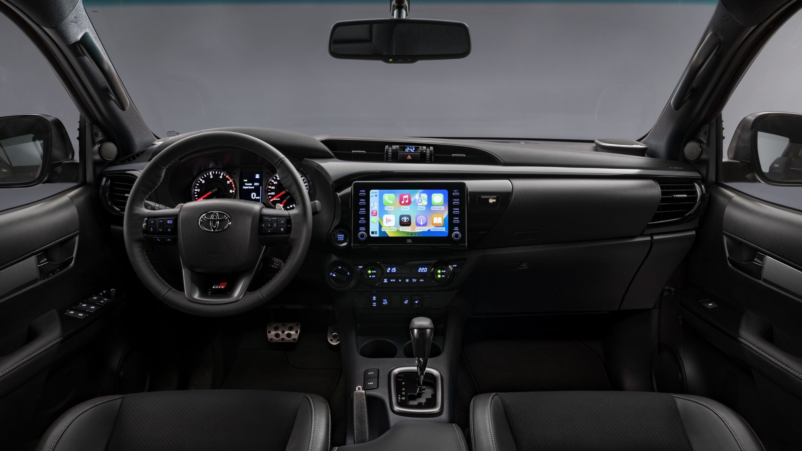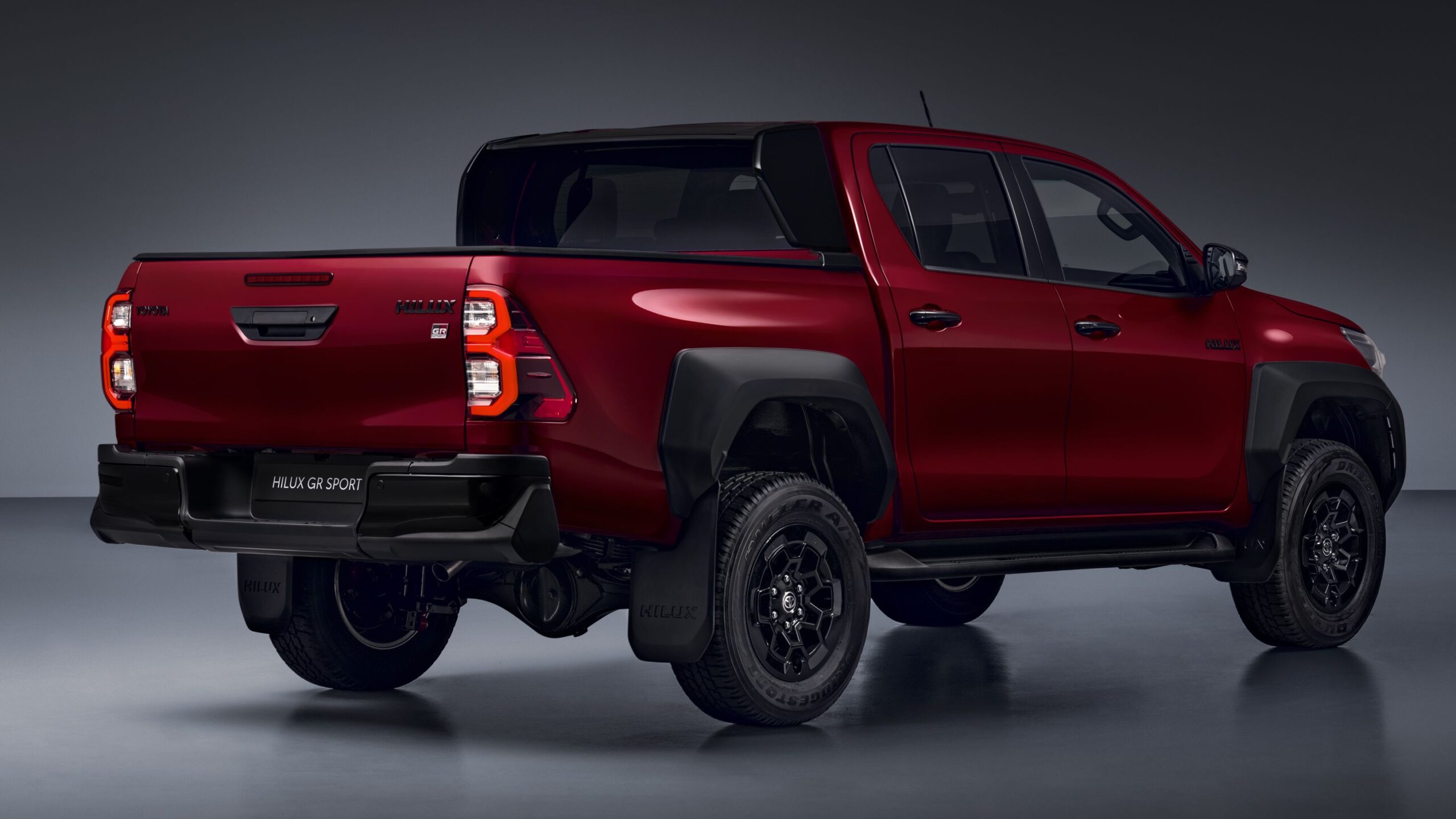 Kívülről a fekete díszbetétekről, kerékjárati ívekről és tükörházakról könnyen felismerhető a GR Sport Hilux, de az új, ugyancsak fekete, 17 colos könnyűfém felnik is árulkodnak. Emellett az ezüstszínű első alsó védőburkolat, a fekete hátsó lökhárító és a jellegzetes GR SPORT logók sem hiányoznak az autóról.