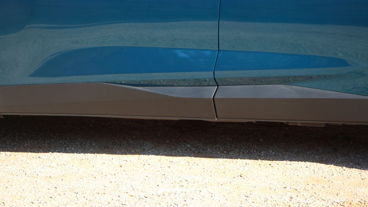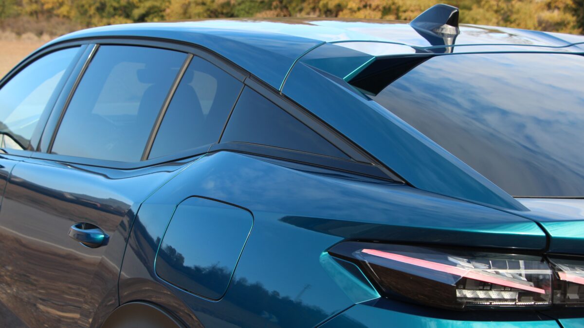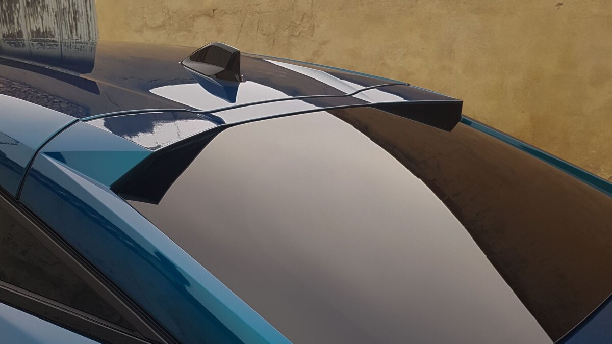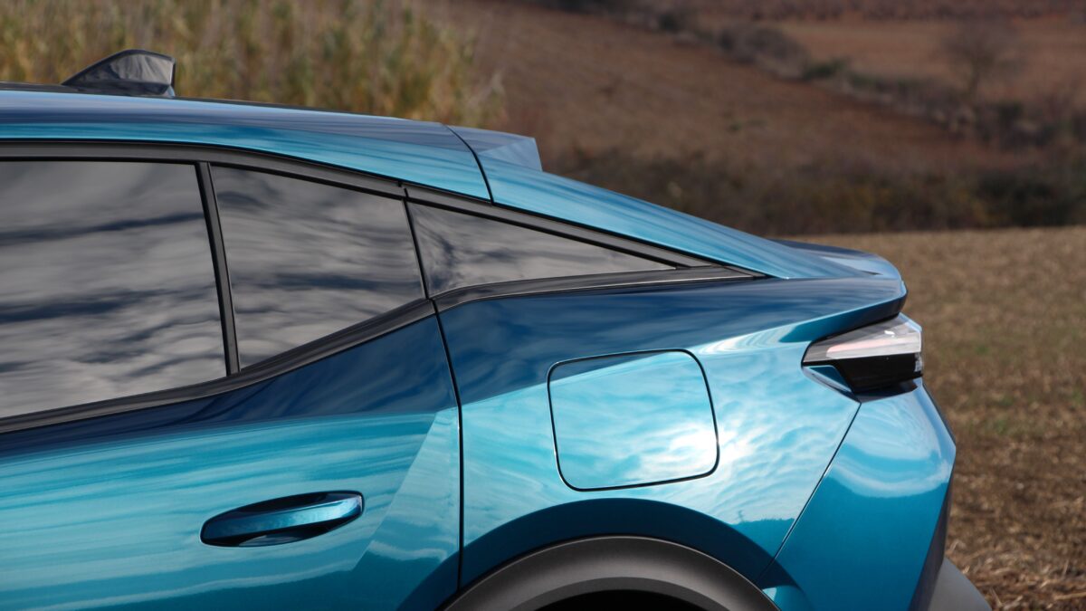 Látványosan zárták le a C-oszlopon az oldalablakok ívét. A fényezetlen hátsó lökhárító sem hat idegenként