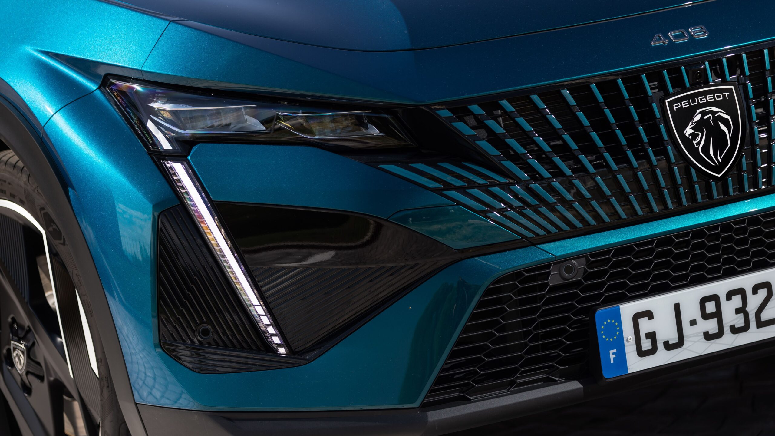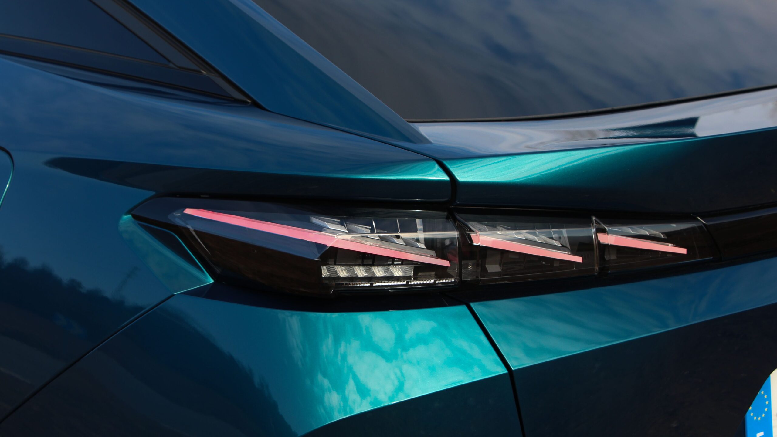 De hova céloz a piacon? A kérdés megválaszolásához nézzük a méreteit. A 2,78 méteres tengelytáv, a 4,69 méteres hosszúság, az 1,86 méteres szélesség és az 1,48 méteres magasság a C-szegmens tetejére pozicionálja őt, illetve maga a Peugeot is. Az EMP2 platformon osztozik a C5 X-szel, de egyértelműen a 408 képviseli a sportosabb vonalat. Elöl az új embléma már itt is a vezetőtámogató rendszerekhez szükséges radar rejtekhelye, emellett a karosszéria színére fényezett hűtőmaszk is látványos megoldás. természetesen a karmokra emlékeztető LED-csíkok sem hiányoznak, amelyek már messziről hirdetik, hogy egy Peugeot közeledik. Persze a hátsó lámpák is elérik ugyanezt a hatást, de még mielőtt a tomporát lesnénk, érdemes elidőzni az oldalnézeten is. Fény-árnyék vonalak „mozdulatlan tánca” játszik a szemünkkel, fantasztikusan változtatva például az alapáron járó türkizkék fényezés árnyalatait.