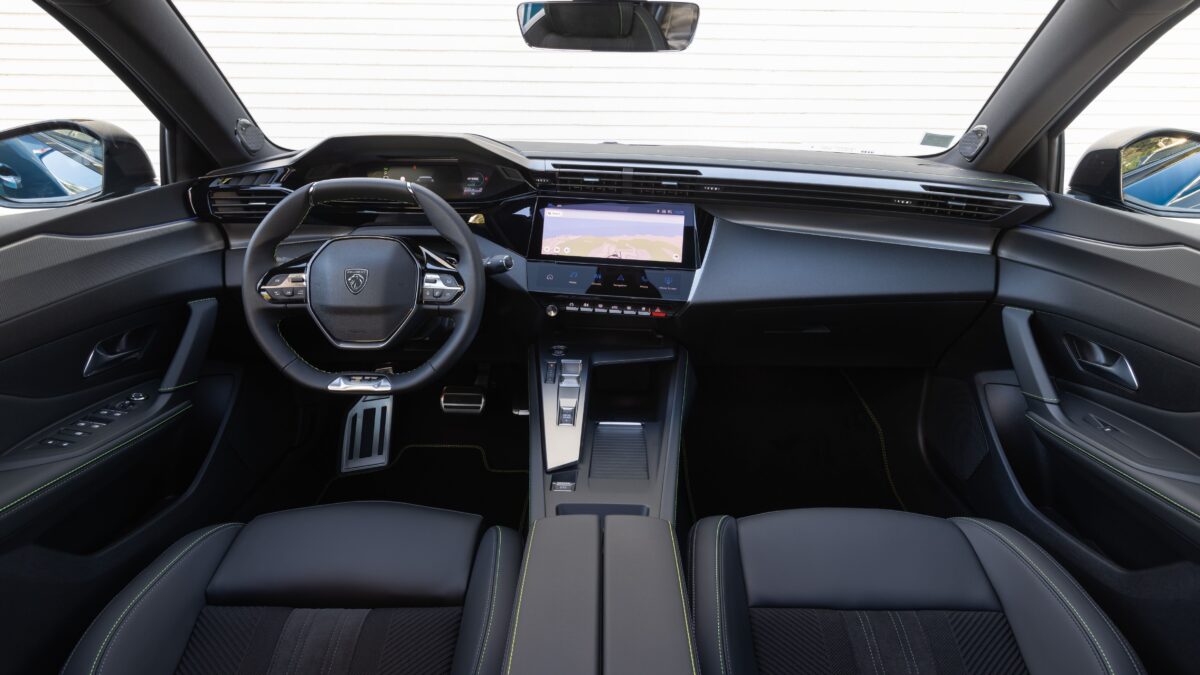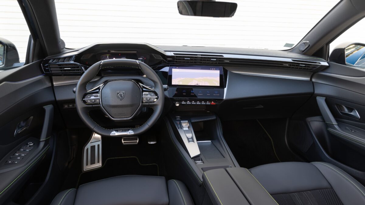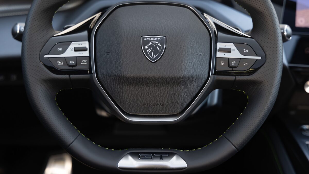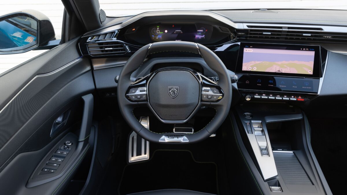 Beülve mi más fogadna, mint az iCockpit, ami már régóta nem kérdés, hogy jó megoldás. Egy ideje már nem kell félni attól, hogy nehéz személyre szabni. Átlagos magasságú vezetők szinte azonnal a tökéletes pozícióba kerülnek, jól látható innen a 10 colos digitális műszeregység, ami GT felszereltséggel 3D hatású. Ugyancsak 10 colos a középkonzol tetején elhelyezett érintőképernyő, amely enyhén a vezető felé fordul, alatta a szintén érintésérzékeny ikonokkal, valamint a billenőkapcsoló-szerű gombokkal. Kezelésük egyszerű, logikus, ahogy lejjebb az üzemmódválasztó és a váltógomb is elhelyezése is. Az infotainment mindent tud, amit ma tudnia kell, tehát okostelefonos kompatibilitást és hangvezérlést is, de nem felejtették ki a vezeték nélküli telefontöltőt sem.