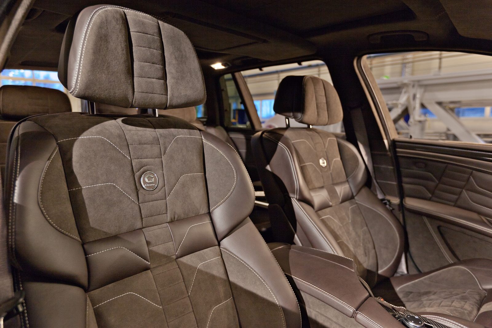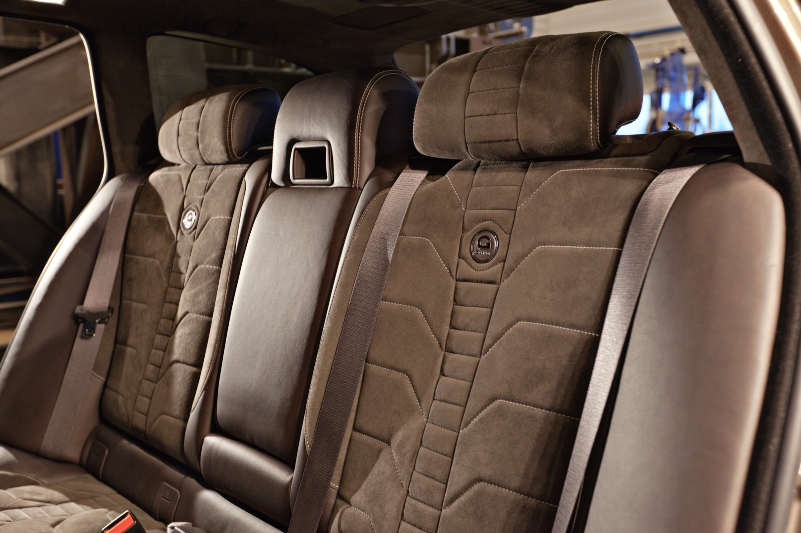 Az utastér a karbonszálas betétek mellé Alcantara kárpitozást, iPhone integrációt, hátra két kisebb és egy tetőből lehajtható, iMac számítógépre kötött óriási monitort kapott vezeték nélküli billentyűzetekkel. Ha esetleg nem lenne elég nyomkodni való, a csomagtér erősítőket is rejtő padlójában van még két iPad, az utastér összes elektronikája és világítása is ezen készülékekről, a G-Power saját alkalmazásával (is) vezérelhető.