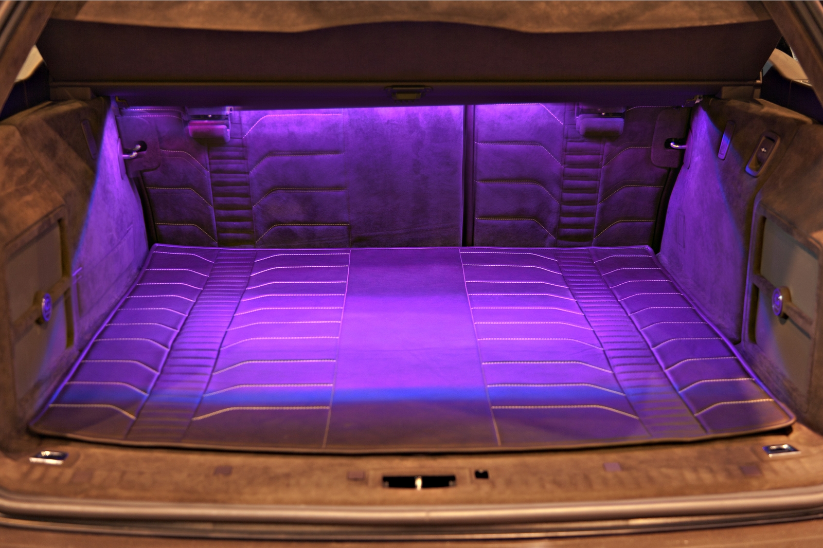A színes padlóvilágítás szerencsére kikapcsolható, akár a hátsó ülésről billentyűzetet, vagy iPadet nyomkodva is