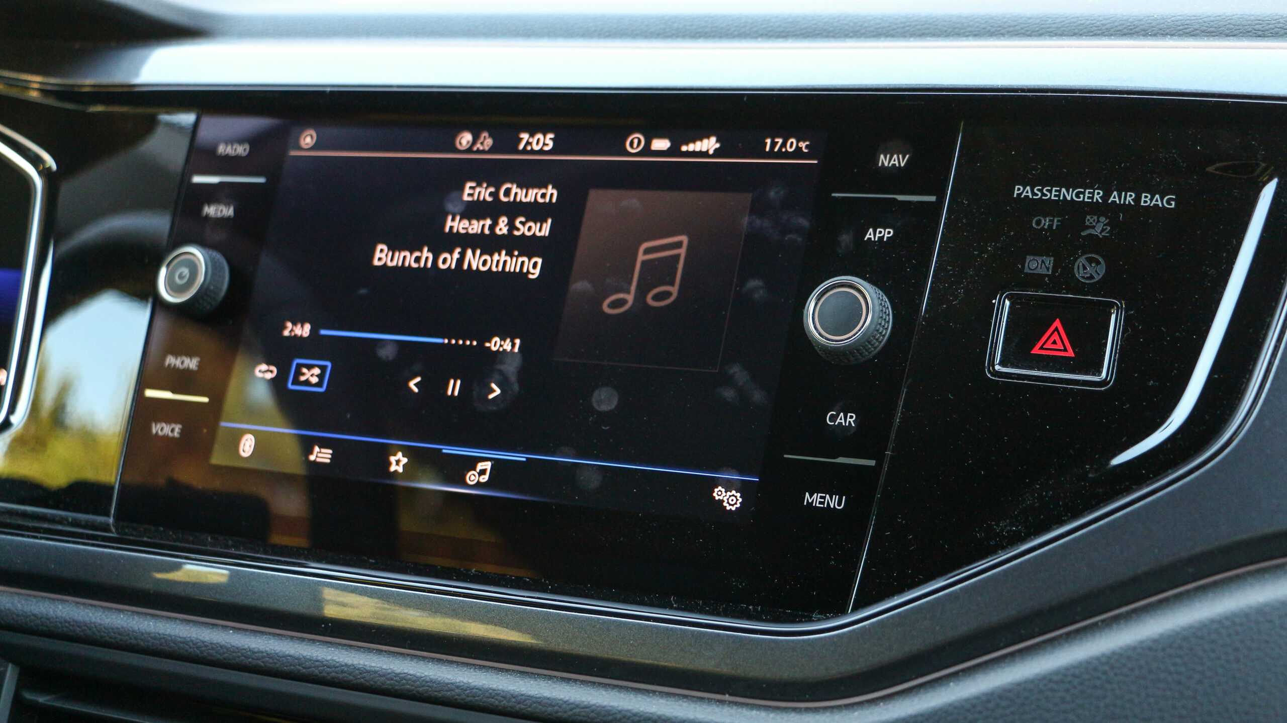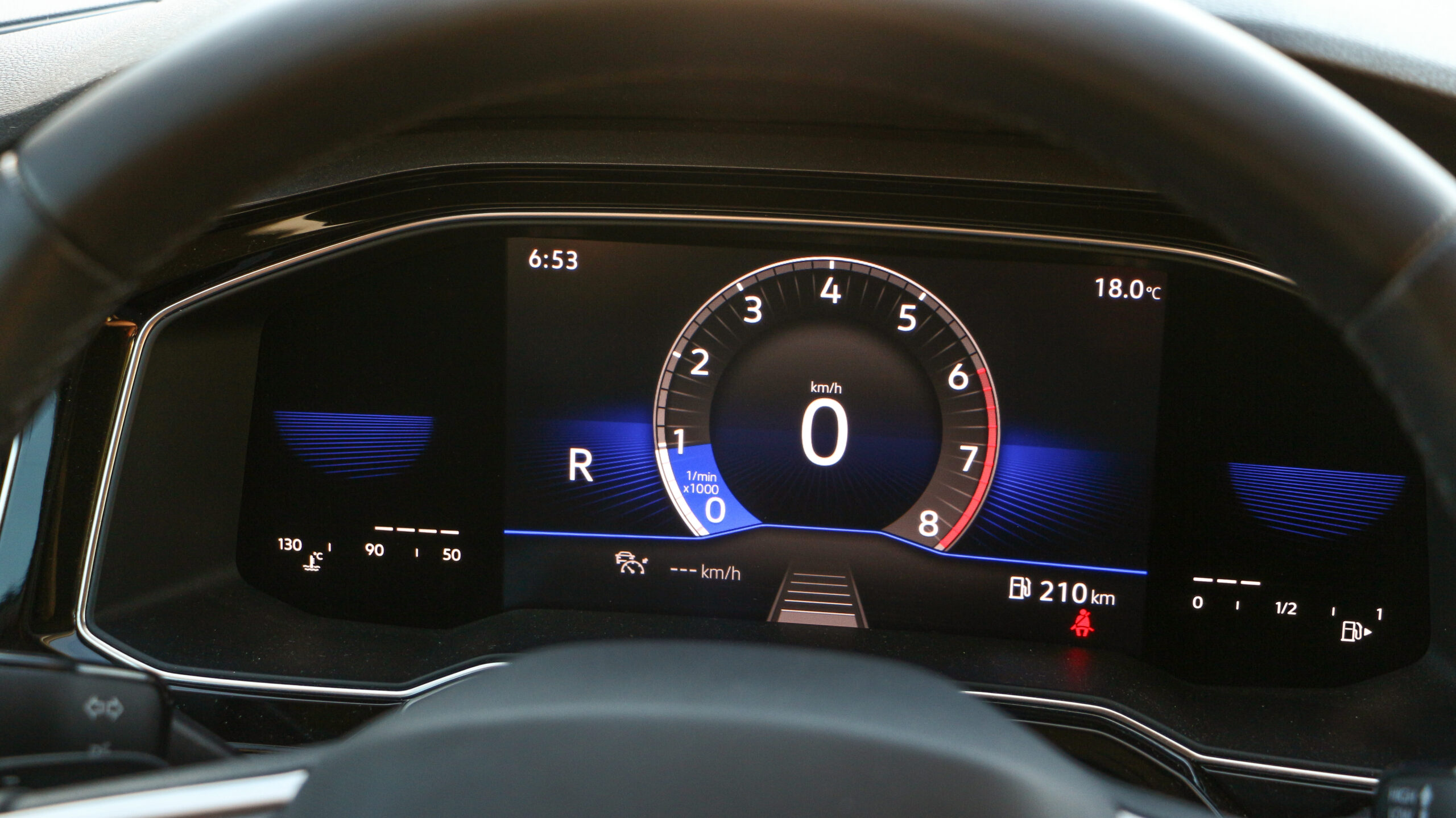 Bent is folytatódik mindez, tökéletes fúzióját kapjuk a modern és a klasszikus Volkswagen beltereknek. Digitális műszeregység és gyors, modern infotainment képernyő fogad, utóbbiból egyedül az egyszerre több mindent megjelenítő nézetet hiányoltam, a navigációt kevésbé. Ennek ellenére különálló vezérlőegységet kapott a kétzónás klíma és a lámpakapcsoló tapipadja helyett is a megszokott tekerőkapcsoló tér vissza: mindkettő egyértelműen közkedvelt, a régi modellekből visszasírt részlet. A kormány fogása remek, bár számomra kicsit nagynak érződött a műszerfal többi elemének méretéhez és a konkurensek egyre kisebb kormányaihoz képest, ám a klasszikus váltókarral párosítva hangulatos végeredményt hoz.