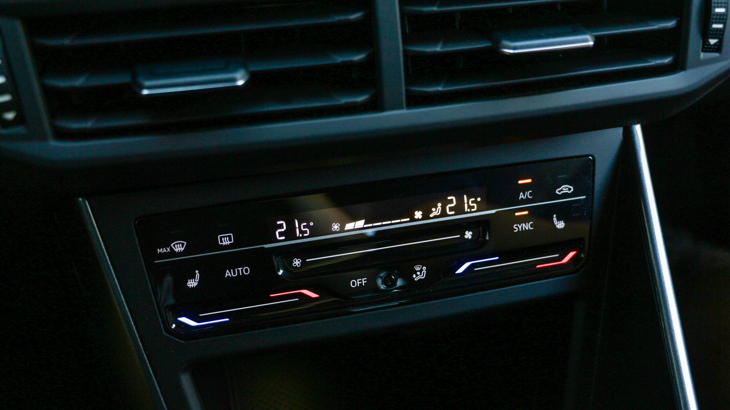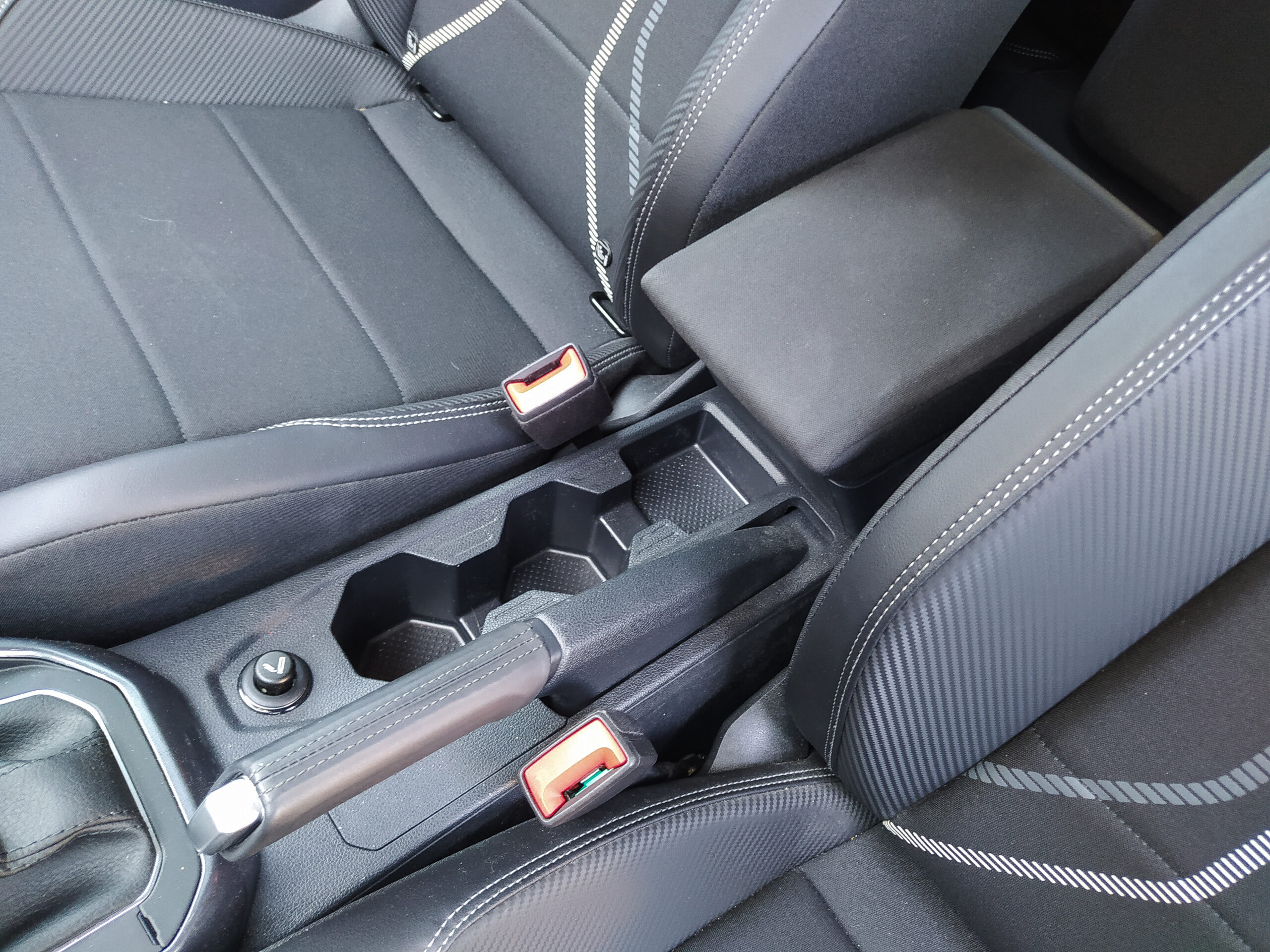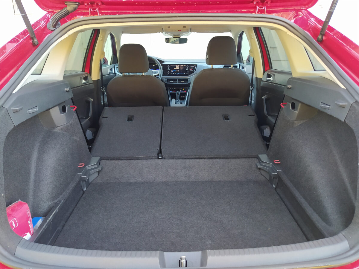 A beltér elrendezése szellős, tágas, az üléspozíció magas, elöl és hátul is korrekt a helykínálat a Taigóban. Itt viszont már visszaüt a kisautó-platform: hiába nagy a tér hátul, és hiába kiemelkedően kényelmesek a második sorban is az ülések, sok apró részlet hiányzik. Meglepő az is, hogy ekkora légtérhez hátul nincsenek szellőzők, az itt utazóknak csak a lábukhoz fújja a levegőt az autó. Ez a nyári melegben azért volt zavaró, mert mire a hátsó sort lehűti a klíma, addigra elöl már beköszöntött a jégkorszak. Ennél sokkal apróbb, ám mégis szemet szúró részlet a hátsó könyöklő és pohártartók hiánya, illetve a felső kapaszkodók eltűnése elöl-hátul. Szerencsére két USB-C csatlakozó azért jutott hátra is, így legalább a tablet vagy a mobiltelefon el tudja terelni az itt utazók figyelmét ezekről az apróságokról. Az egész mögött egy meglepően nagy, 440 literes puttonyt találunk, amely jól variálható és még jobban pakolható. A padlómagasság is állítható, ám ezzel sem lesz teljesen sík az alja a ledöntött ülésekkel 1122 literes raktérnek.