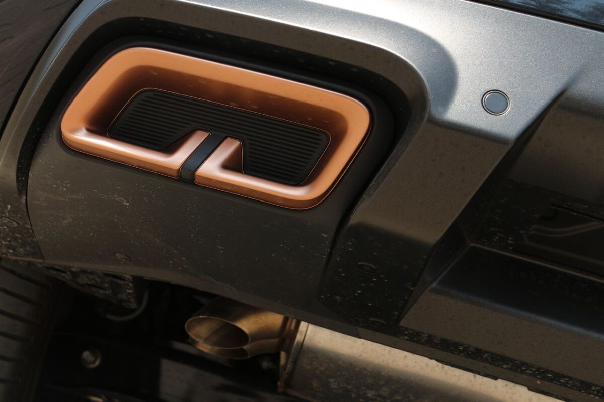 A diffúzorbetét sokat dob a sportosságon, nagy kár, hogy a kipufogók kamuk, a valódi a bal oldalon, mélyen az autó alá rejtve található