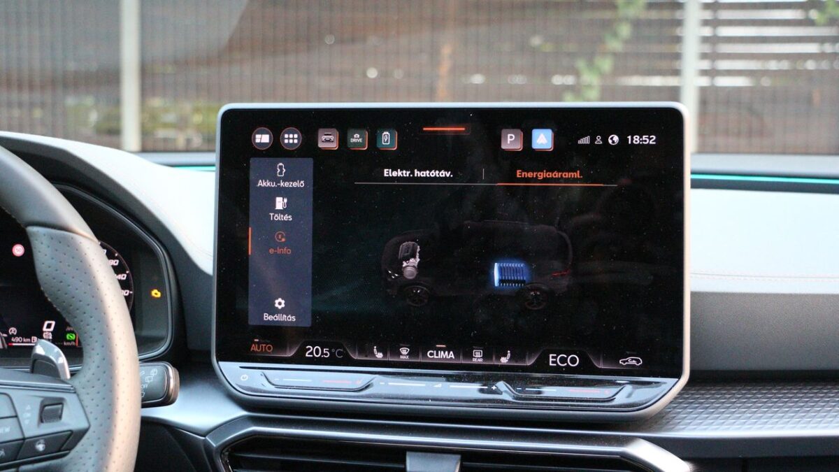 Motorfronton a Cupra nem kockáztatott, és igyekszik a lehető legszélesebb vásárlóréteget kiszolgálni. Éppen ezért a frissített Formentor a tisztán elektromos meghajtás kivételével mindenféle hajtáslánccal elérhető – bizonyos piacokom még dízelmotorral is. A tesztpéldány konnektoros hibridként érkezett hozzánk, amelynek szívét 1,5 literes, négyhengeres TSI benzines erőforrás adja 177 lóerővel és 250 newtonméterrel. Ehhez társul a 114 lóerős villanymotor 330 newtonméterrel, valamint a 25,8 kilowattórás akkumulátor. A rendszerteljesítmény 272 lóerő és kerek 400 newtonméter, a márka adatai szerint pedig a második generációs PHEV rendszer 108-119 kilométer közötti emissziómentes hatótávot képes biztosítani. Jól hangzik, de mi igaz mindebből?