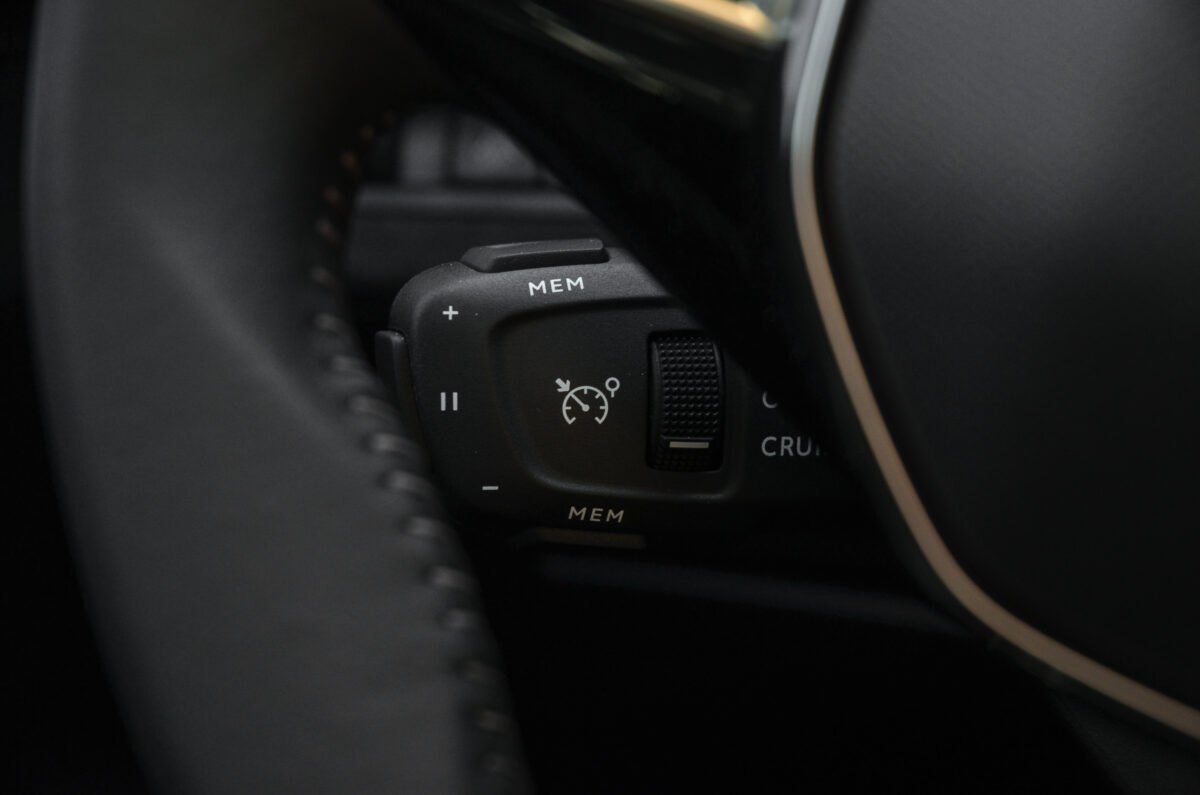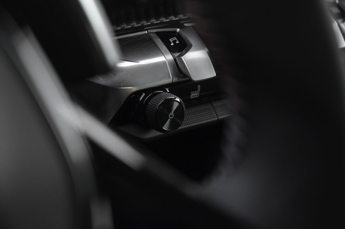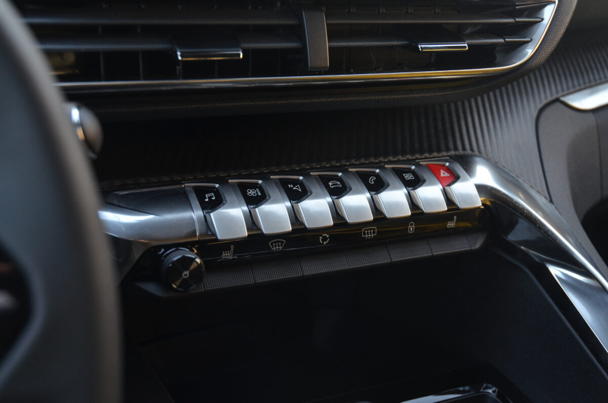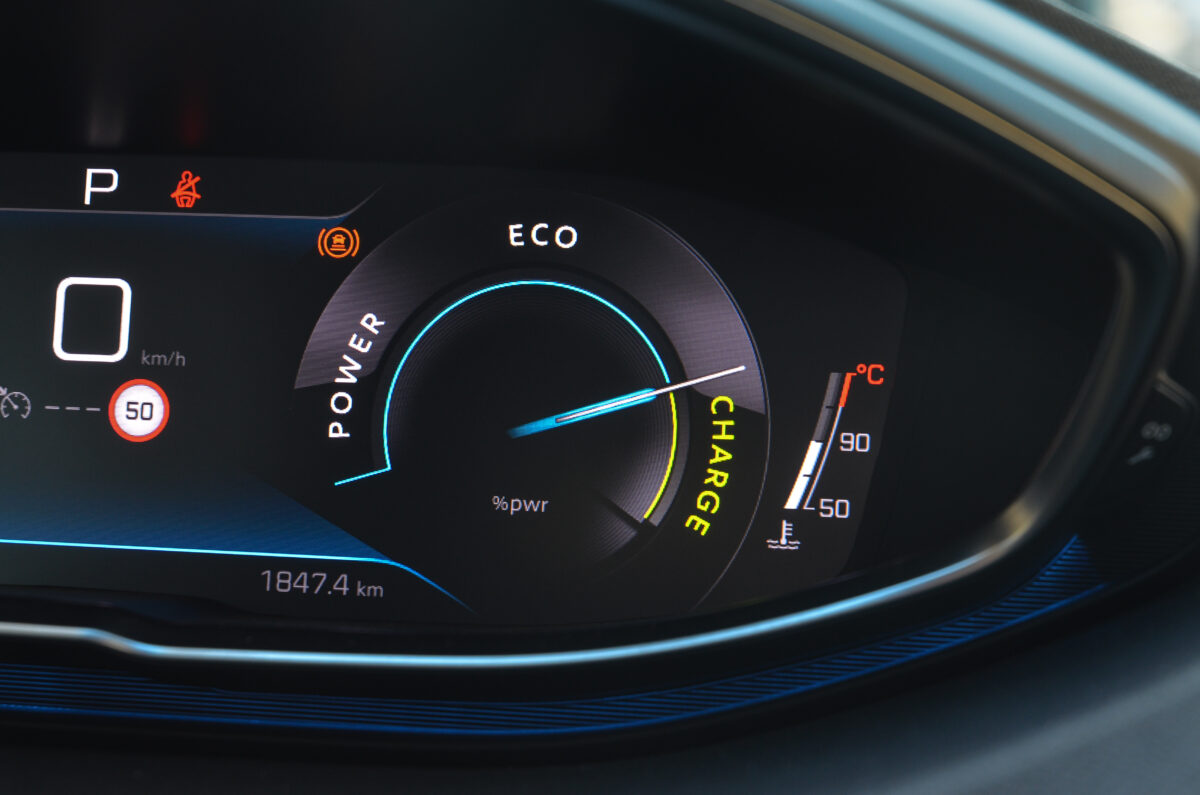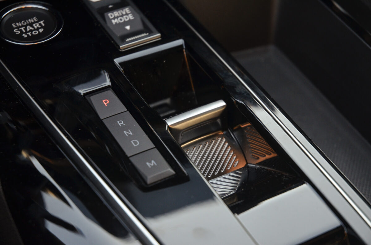 Beülve először minden ugyanolyan, mint eddig. A hatalmas térnek még a szokásosnál is jobban áll az i-Cockpit, az irányváltó is ugyanott helyezkedik el, mint a korábbi, automataváltós modellekben. Amíg nem indítod be az autót, addig nincs észrevehető különbség. Később már egyértelművé válik, hogy hol kell keresni az újítást: a digitális műszeregységen innentől fordulatszámmérő helyett a hibridekre jellemző, a leadott erőt illetve a visszatöltést mutató grafika látható.