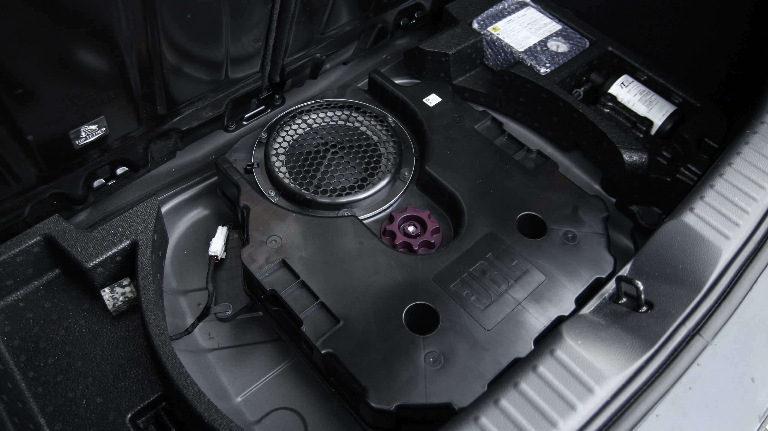 A padló alatt a pótkerék helyén a mélyláda található, ami elsőre indokolatlanul nagynak tűnik, ám elhelyezéséből adódóan szükséges a mérete, hogy eljusson a hangja az első sorig