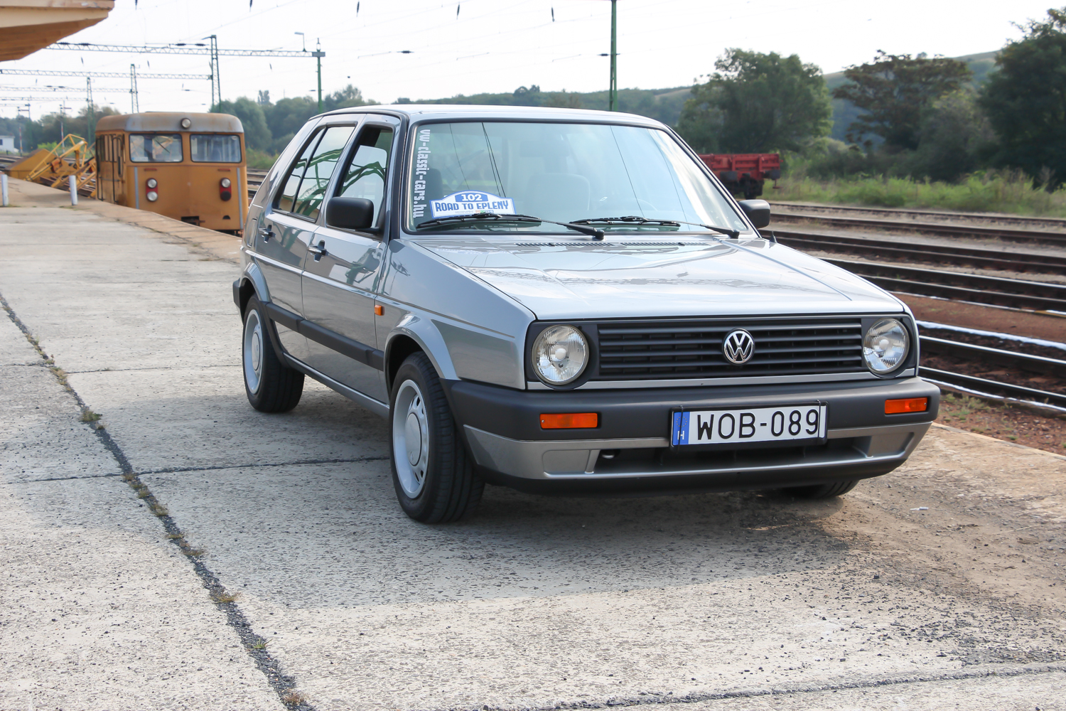 Az úgy volt, hogy épp egy kiadós Ladázás után, gyakorlatig átültem a kettes Golfba. Az amúgy gyönyörű és remek Ladákról majd később, de most itt éppen a Volkswagen Road to Eplény rendezvénye előtti induláskor a kvázi vadiúj Golf ülését állítgatom. Olyan gondolatok kavarognak a fejemben, mint édesapám sztorija, aki az Opel Kadett E szervótlanul is könnyű kormánya után azt hitte a sportkormányos 1500-ös Ladájába visszaülve, hogy rajta maradt a kormányzár. Hogy mennyire durva különbség átülni a pihe-puhára kárpitozott, 1989-es évjáratú Golfba akármilyen itthon elterjedt volt szocialisat típusból, azt csak az tudja, aki megélte a korszakot, vagy módjában állt összekóstolni a kettőt. A Golf helyett itt állhatna példaként persze bármelyik nyugati kortársa is. Az érzés euforikus lehetett és ma is az, ha egy ennyire egyben lévő, már bőven youngtimer korú, oldtimer alapnak is ideális Golf a tesztalany.
