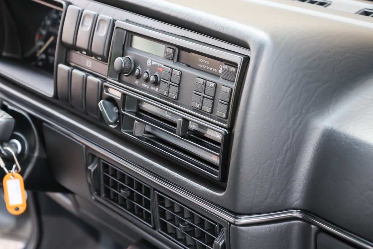 Ki kellett szálljak a kormány mögül és a kezembe kellett vennem a fényképezőgépet, hogy a keresőn át újra megnézzem az autót. Hú, de durván egyben van! Nem tudom, hogy láttam-e valaha ennyire ép és eredeti állapotú kettes Golfot, ami mozgott is. Ez a kettes ráadásul már a '91-ig tartó széria vége felé készült. 1987-ben volt egy modellfrissítés, onnantól az első oldalbakok teljes egészében nyithatók, eltűntek a kis háromszögablakok és ebből adódóan a külső visszapillantók is változtak, előbbre kerültek. Változtak a típusfeliratok és a hűtőmaszk is. Újakra cserélték minden változatnál a kormányokat, meg a üléseket, innentől Typ 19 helyett már 1G volt a típus belső elnevezése. Ehhez jött még hozzá 1989-ben az új fedélzeti elektronika és a képeken is látható nagy lökhárítók, amikkel 5,5 centivel lett hosszabb a GL és a GTI, amihez ez járt. Maga a GL a polgári verziók csúcsát jelentette ekkoriban olyan tételekkel, mint a zöld színű hővédő üveg, a magasságban állítható vezetőülés, a négyküllős kormány, a zárható kesztyűtartó és az elektromos centrálzár. A sportos GT és az abszolút hot hatch GTI volt csak felette. Súlyos felárért lehetett rendelni bele automata váltót, elektromos ablakokat, klímát, szervokormányt, tolótetőt, bőrkárpitot, sőt még egy MFA névre hallgató többfunkciós fedélzeti számítógépet is.