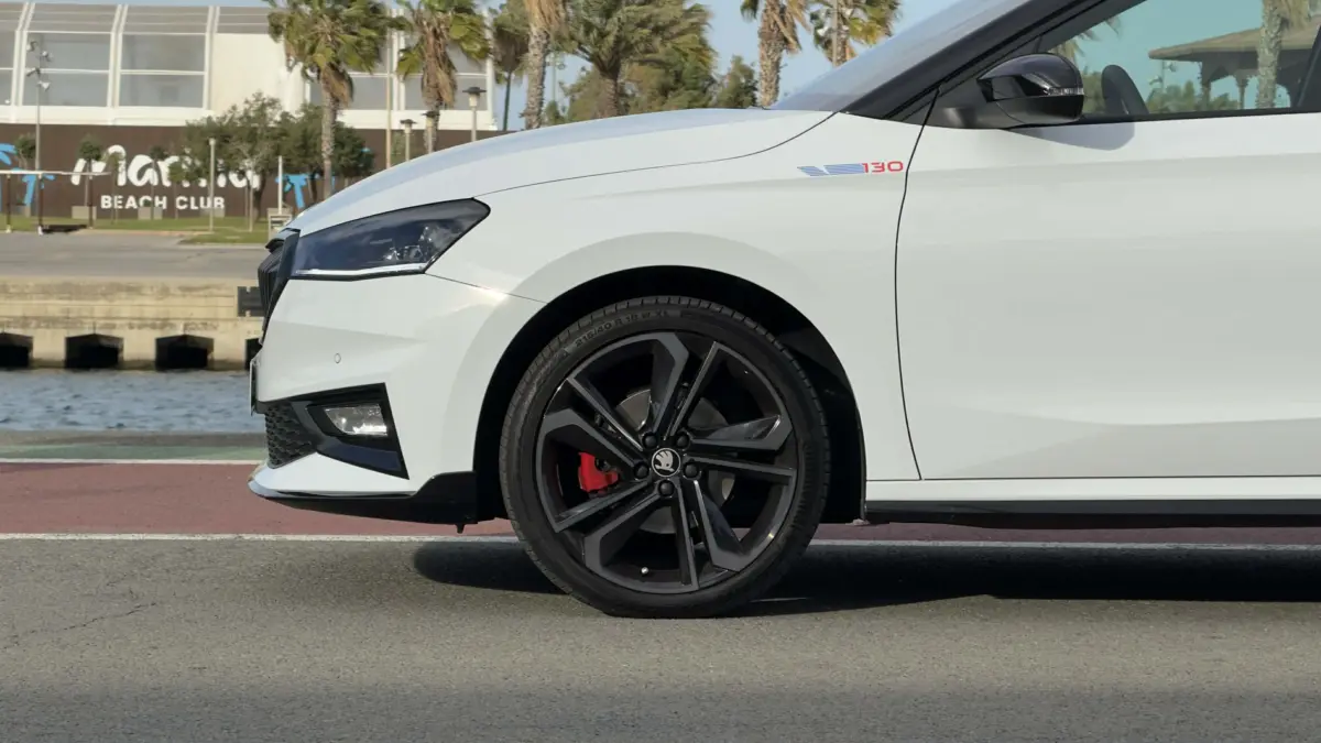 Messziről talán nem tűnik annyira markánsnak a különbség az eddig is kapható Fabiákhoz képest, viszont közelebb lépve rögtön szemet szúrnak a különleges részletek. Elöl a lökhárító alatti légterelő kapásból vadít egy keveset a kisautón, de a 18 colos, kizárólag ehhez a verzióhoz kapható felnik, és a piros féknyergek egyértelműen jelzik, ez bizony nem a 7 millió forint alatt is elérhető alapmodell. A szolid hátsó légterelővel kiegészülve ízlésesen sportos marad az autó, nem estek át a ló túloldalára a tervezők és nem lett ripacs és hivalkodó a tuning. Emellett természetesen az autó több pontján felbukkan a 130-as szám is, amely legalább három jelentéstartalmat hordoz magában, amit hamarosan kifejtek.