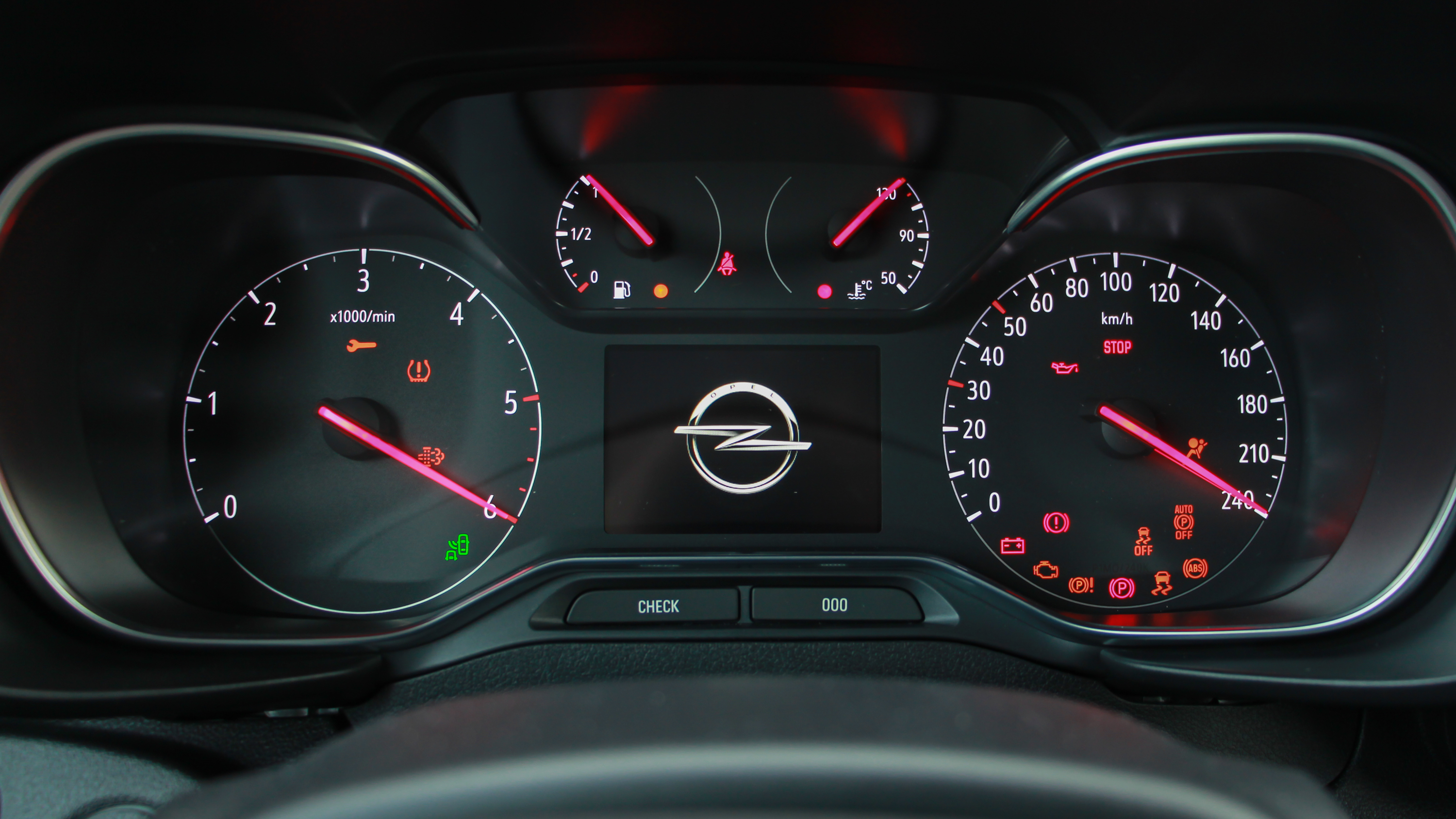 Opel hagyomány, hogy indításkor végállásukba mozdulnak a mutatók, a központi kijelző kamerával is segíthet a parkolásban, hogy az első-hátsó radar jeleinél is több információt kapjunk. A központi, akár gyári navigációval is kérhető kijelzőn Android Auto vagy Apple CarPlay által telefonunk képe (és navija) is megjelenhet