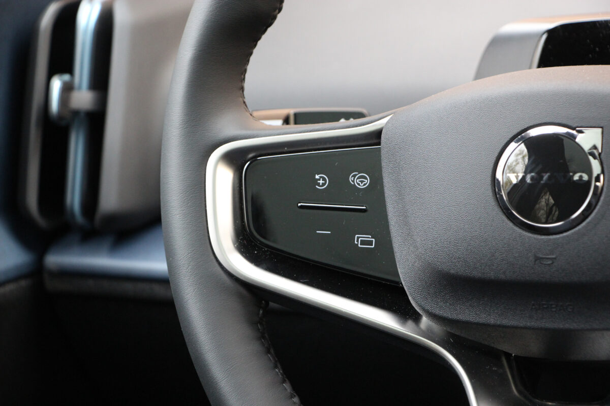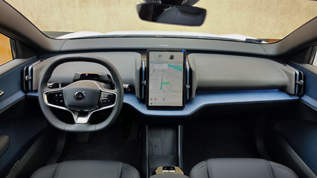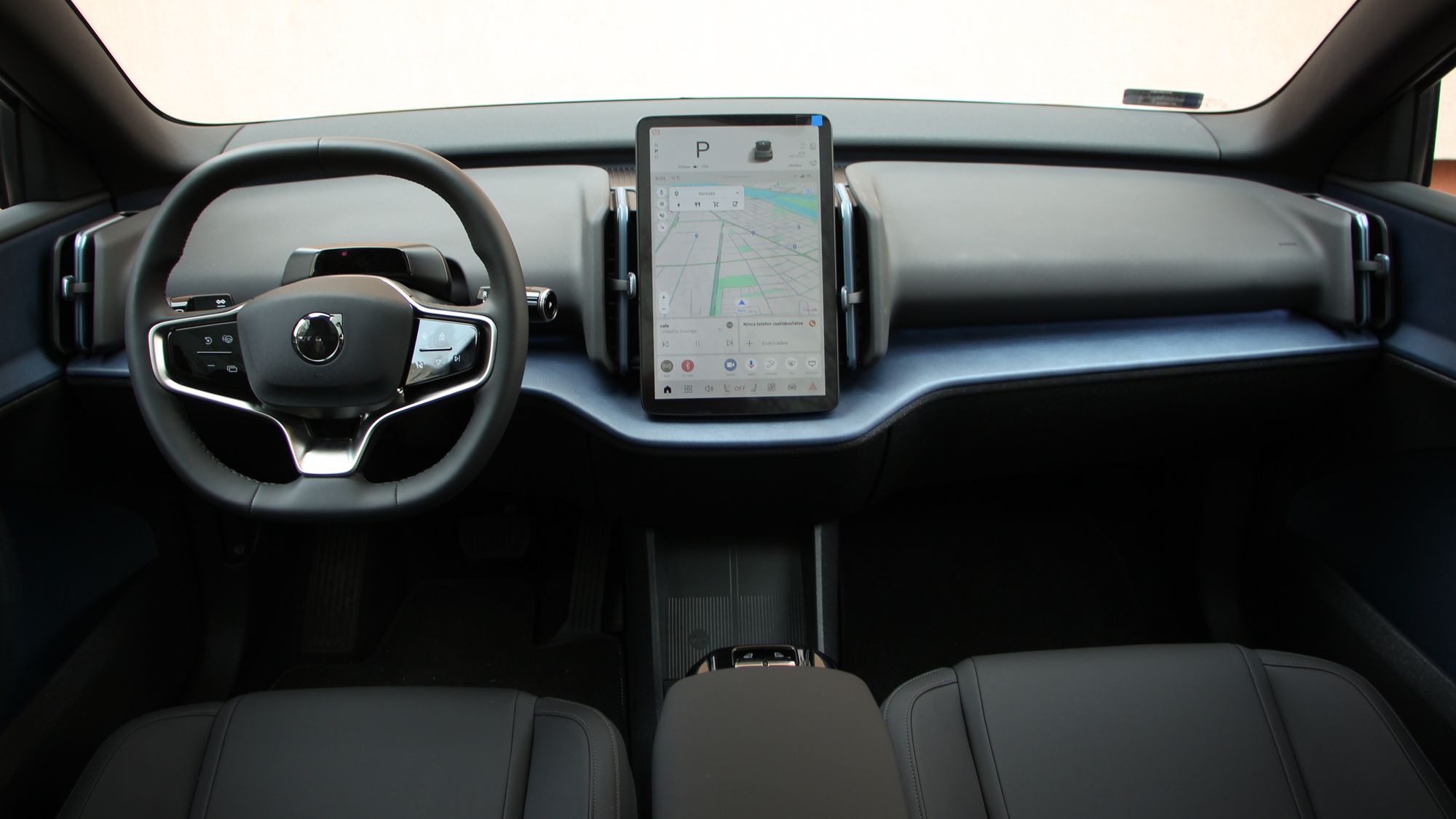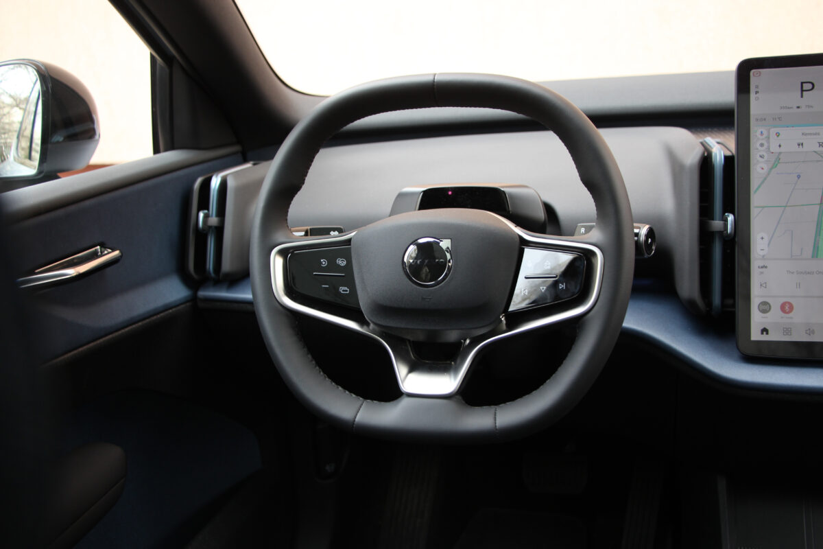 Egyik utasom jegyezte meg, és nagyon igaza volt, hogy az EX30 utastere tisztára Tesla. És valóban. Gombok eltüntetve, csupán a multifunkciós kormánykerékre jutottnéhány, amúgy pedig mindenre ott van a függőlegesen álló érintőképernyő középen. Minden a 12,3 colos kijelzőről vezérelhető, és minden onnan olvasható le. Aki egy Teslát cserél le, nem fog kétségbe esni, aki még nem találkozott ilyennel, valószínűleg szentségel majd néhányszor. Szerintem zavaró, hogy kispórolták a HUD-ot, de sorolhatnék még jó pár funkciót, amelynek elérése, kezelése egyszerűen logikátlan ezzel a módszerrel. Egyesek még a kartámaszra helyezett ablakmozgató gombokat is ide sorolták, bár ez szerintem pont az egyik valóban ergonomikus megoldás, bár mindez együttvéve a spórolást szolgálja. Nekem valahogy nem jön át, hogy ez a modernség velejárója. Sokkal inkább azt látom benne, hogy lespórolták a gombokat, kispórolták a kábelezést az ajtókból (még a kesztyűtartó is a képernyőn tapizva nyitható), cserébe viszont sokkal többen engedhetnek majd meg egy Volvót maguknak.