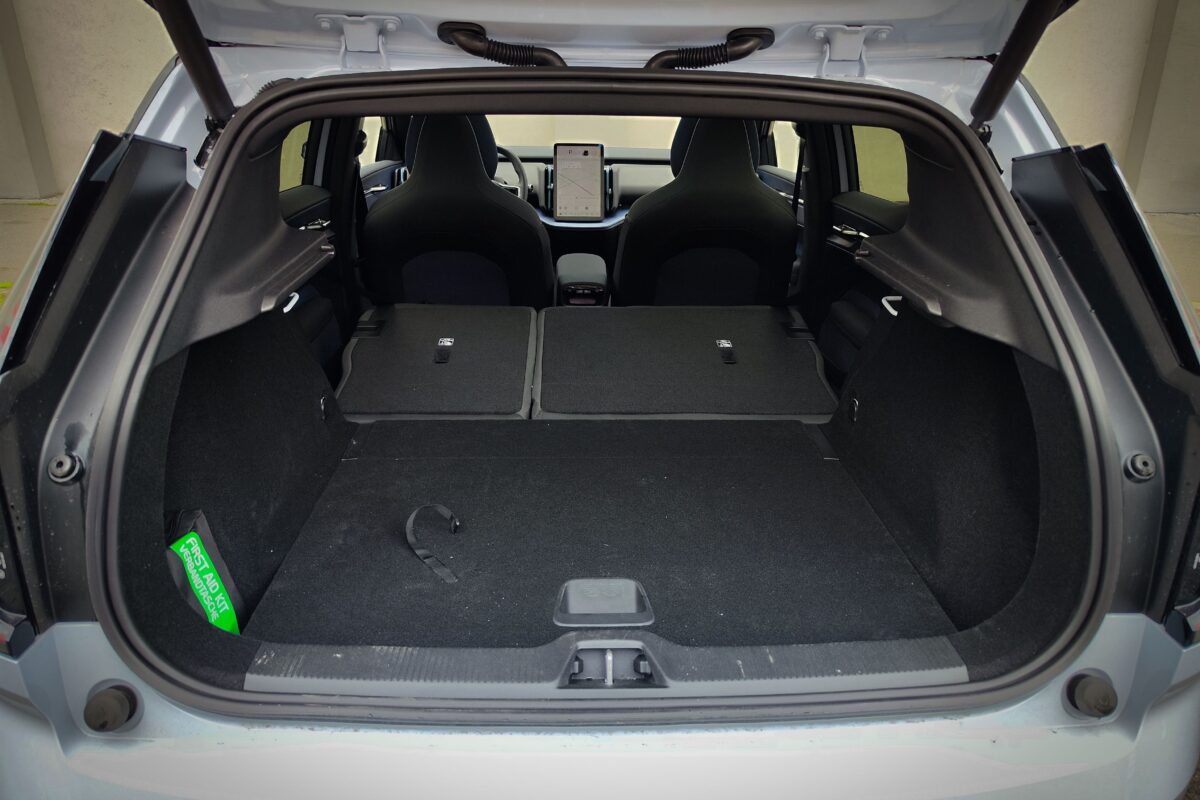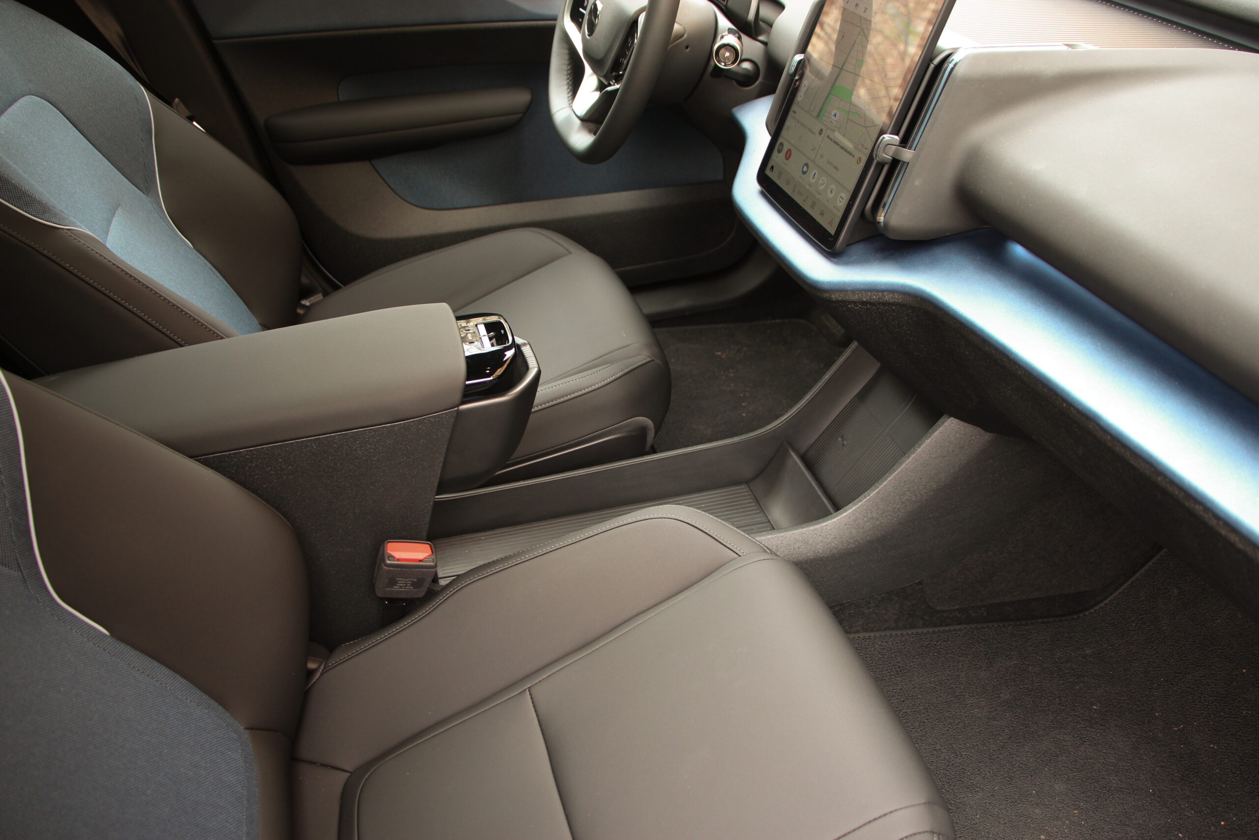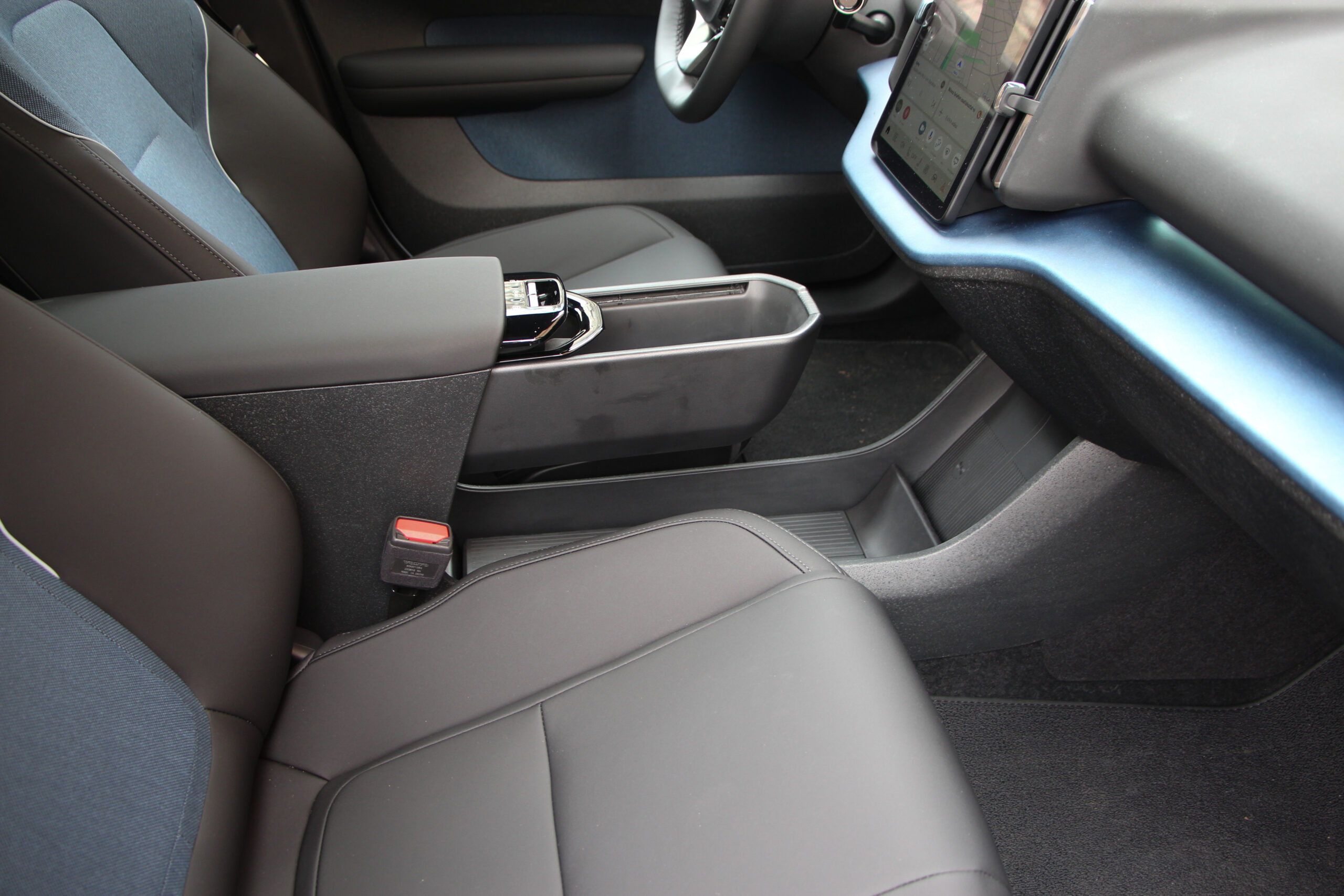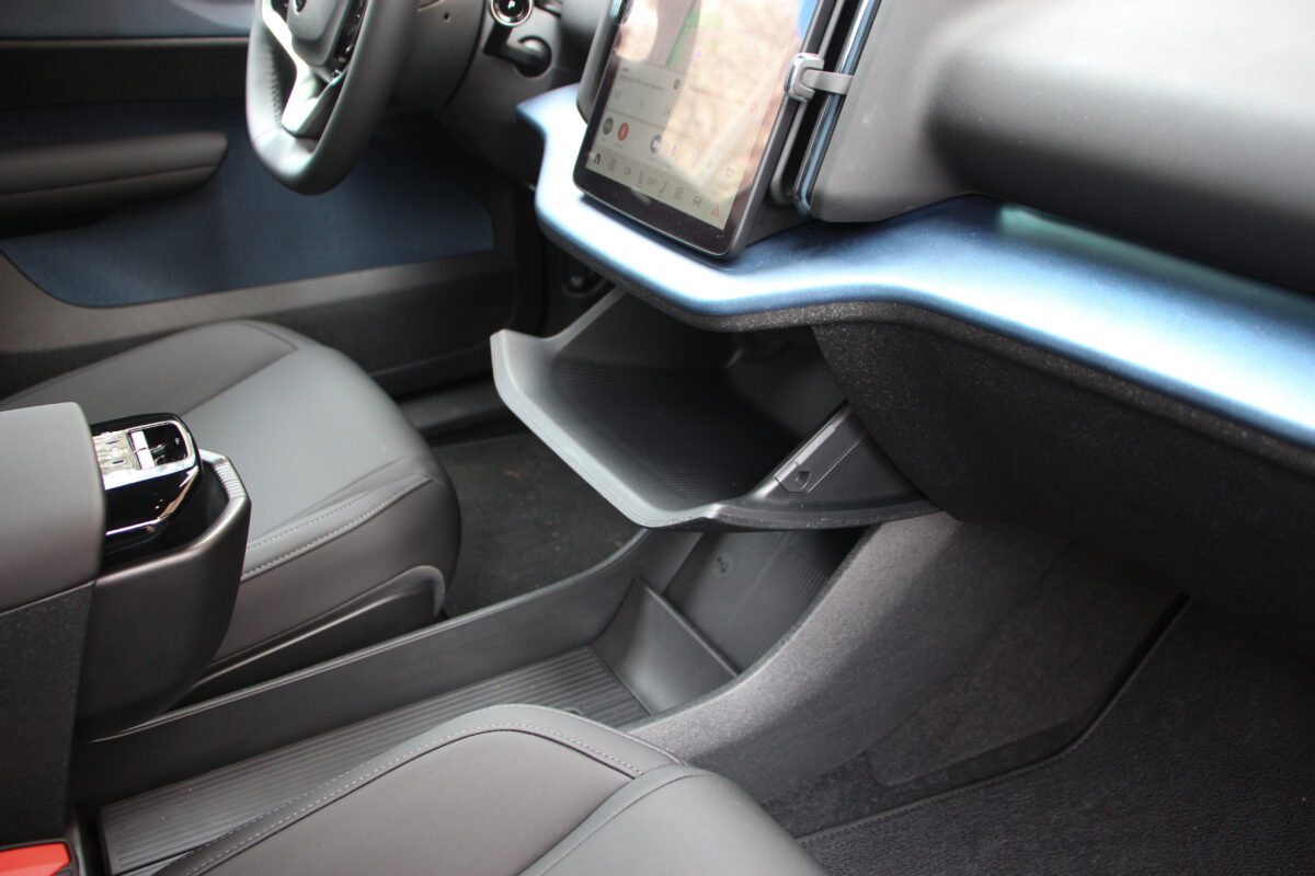 Egyik utasom jegyezte meg, és nagyon igaza volt, hogy az EX30 utastere tisztára Tesla. És valóban. Gombok eltüntetve, csupán a multifunkciós kormánykerékre jutottnéhány, amúgy pedig mindenre ott van a függőlegesen álló érintőképernyő középen. Minden a 12,3 colos kijelzőről vezérelhető, és minden onnan olvasható le. Aki egy Teslát cserél le, nem fog kétségbe esni, aki még nem találkozott ilyennel, valószínűleg szentségel majd néhányszor. Szerintem zavaró, hogy kispórolták a HUD-ot, de sorolhatnék még jó pár funkciót, amelynek elérése, kezelése egyszerűen logikátlan ezzel a módszerrel. Egyesek még a kartámaszra helyezett ablakmozgató gombokat is ide sorolták, bár ez szerintem pont az egyik valóban ergonomikus megoldás, bár mindez együttvéve a spórolást szolgálja. Nekem valahogy nem jön át, hogy ez a modernség velejárója. Sokkal inkább azt látom benne, hogy lespórolták a gombokat, kispórolták a kábelezést az ajtókból (még a kesztyűtartó is a képernyőn tapizva nyitható), cserébe viszont sokkal többen engedhetnek majd meg egy Volvót maguknak.
