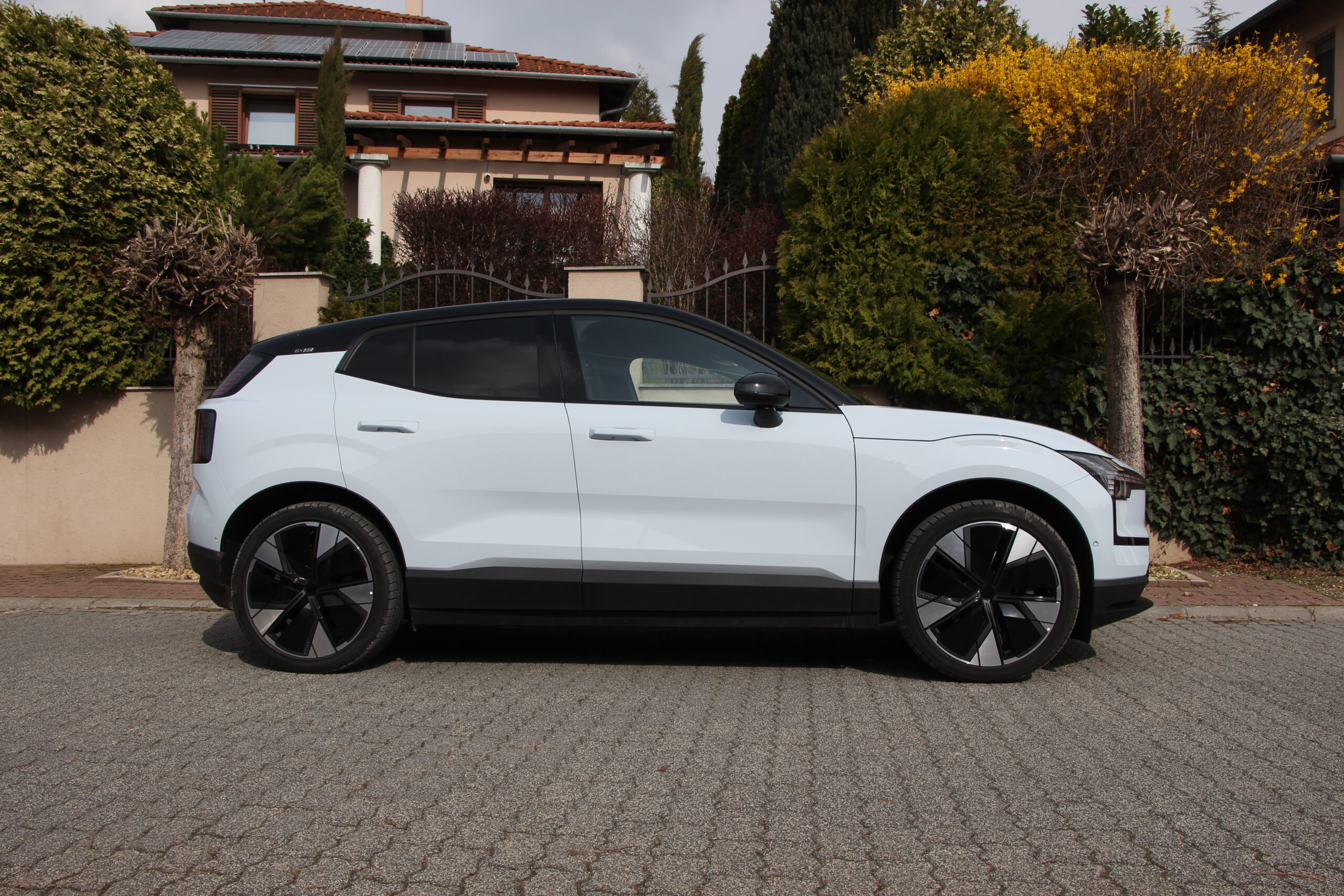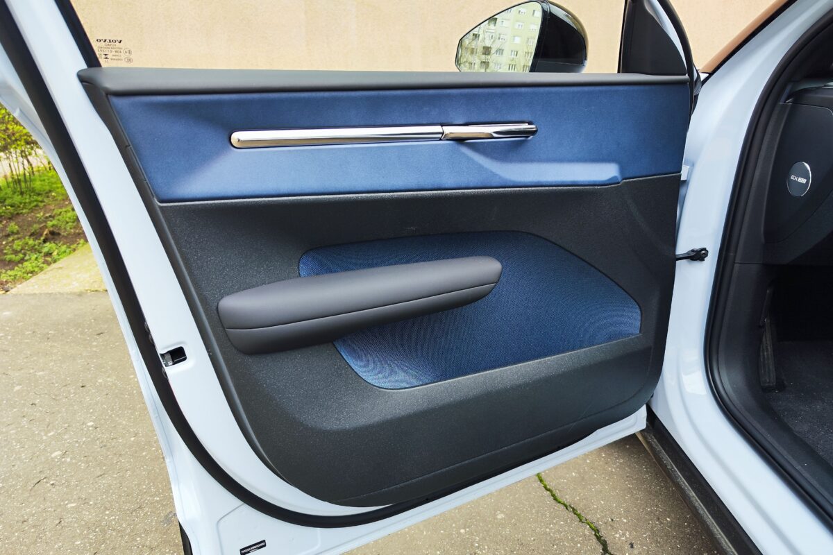 Pedig a nagyobb, 69 kilowattórás, nikkel-mangán-kobalt akkumulátorral tisztességes a hatótávolsága, hiszen akár 476 kilométer is lehet. Persze a hátsó tengelyre felszerelt, 272 lóerős villanymotor, annak 343 Nm nyomatéka és az 5,3 másodperces gyorsulás olykor mókázásra csábít, ám odafigyelve megközelíthető a 17 kWh/100 kilométeres gyári fogyasztási érték. Jómagam is meglepődtem, hiszen az EX30 egy olyan villanyautó, amit tényleg tud valós, sportos vezetési élményt adni. Elöl MacPherson, hátul többlengőkaros, független felfüggesztéssel, szélesen terpeszkedve kimondottan élvezetes vele a kanyarokat vadászni, amit meg is tettem vele. A vegyes tesztfogyasztása viszont megállt 17,8 kWh/100 kilométernél. Így a 300 kilométer simán futható vele egy töltéssel. Aztán a töltés az Ultra felszereltséghez járó 22 kilowattos lehetőséggel 3-4 óra alatt megoldható, de az alapáron kapott 11 kilowattossal is bőven elég a teljes töltéshez egy éjszaka.