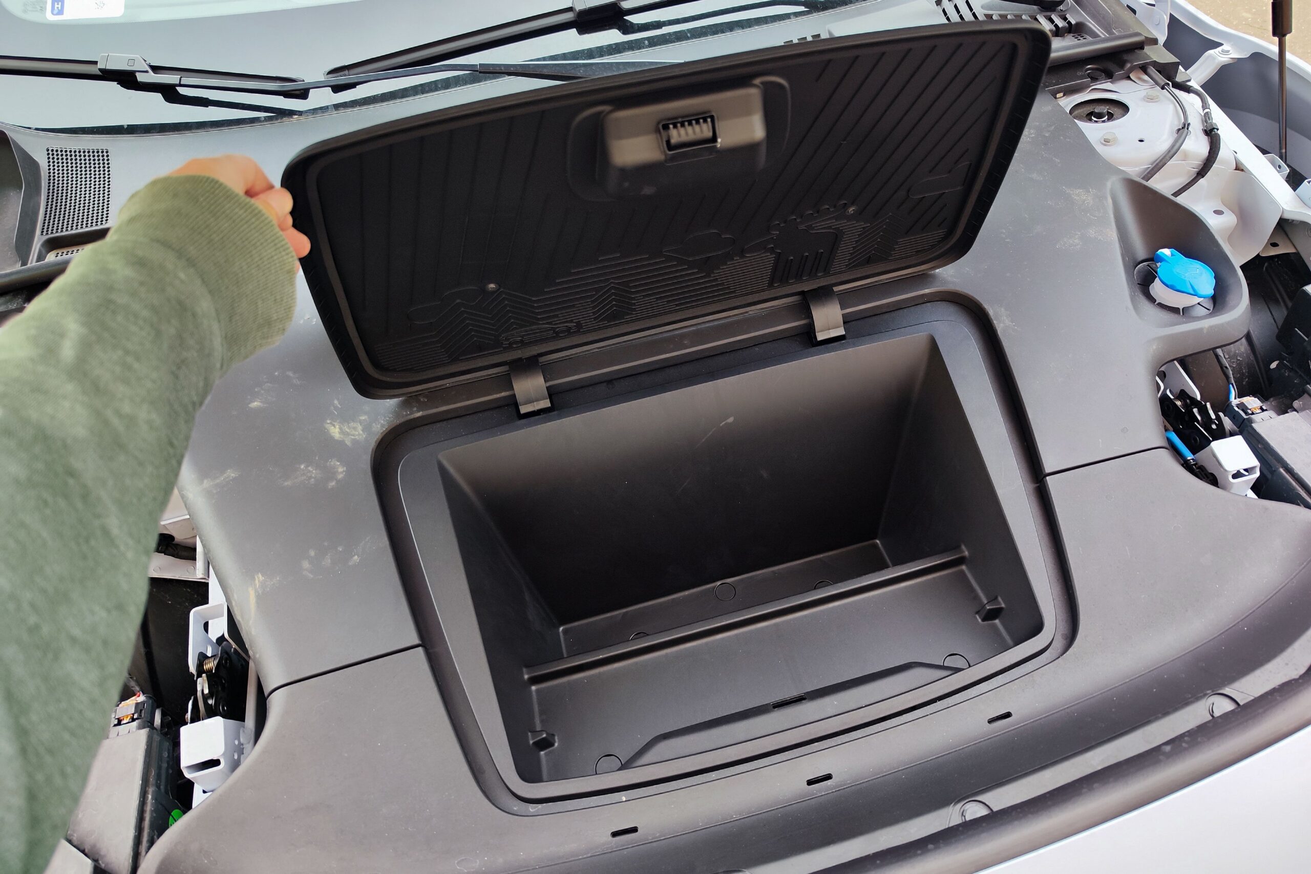 Ráadásul frunk is van, ami csak 7 literes, de a töltőkábeleknek pont jó