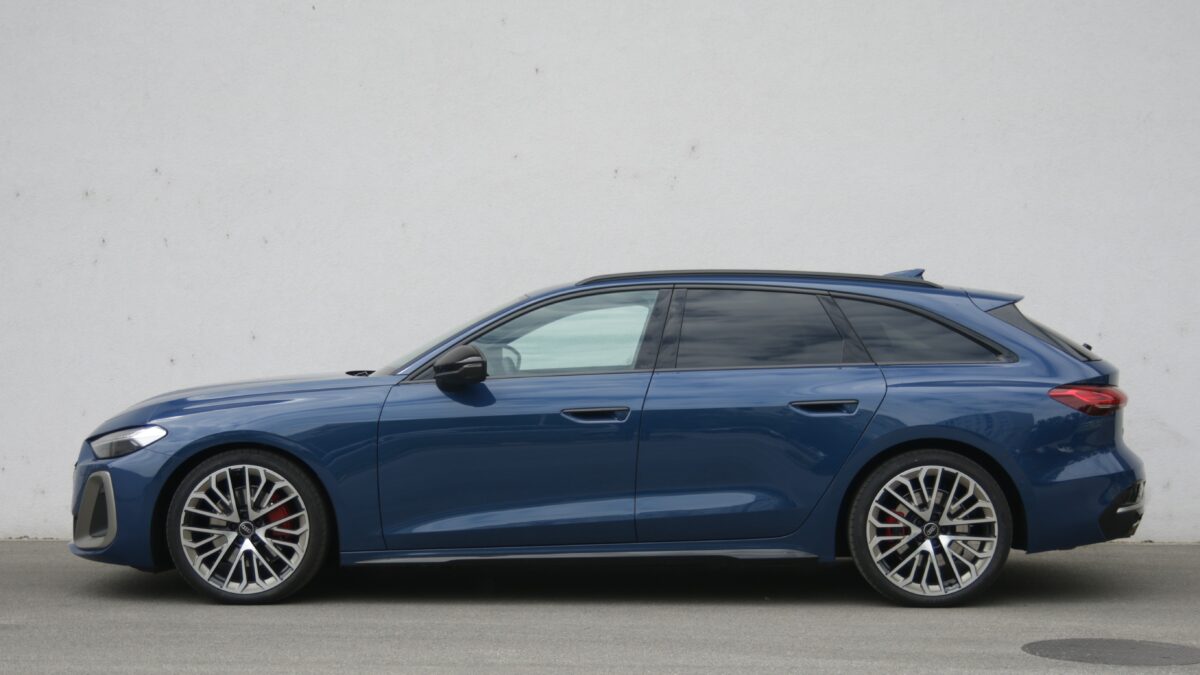 Az A5 oldalról nézve továbbra is a korábbi módszerrel különböztethető meg a nagyobb testvérétől: míg a belső égésű motorral szerelt A6 Avant három oldalablakának alja nagyjából azonos hosszúságú, az A5 Avant, illetve a korábbi A4 generációk oldalablakai hátrafelé haladva látványosan egyre rövidebbek, ezzel valamelyest aránytalanabb sziluettet eredményeznek. Leglátványosabban széltében hízott az újdonság, ám ez is leginkább kívülről nézve feltűnő, részben azért, mert a lámpatestek és a hűtőrács is kihangsúlyozzák az autó szélességét.