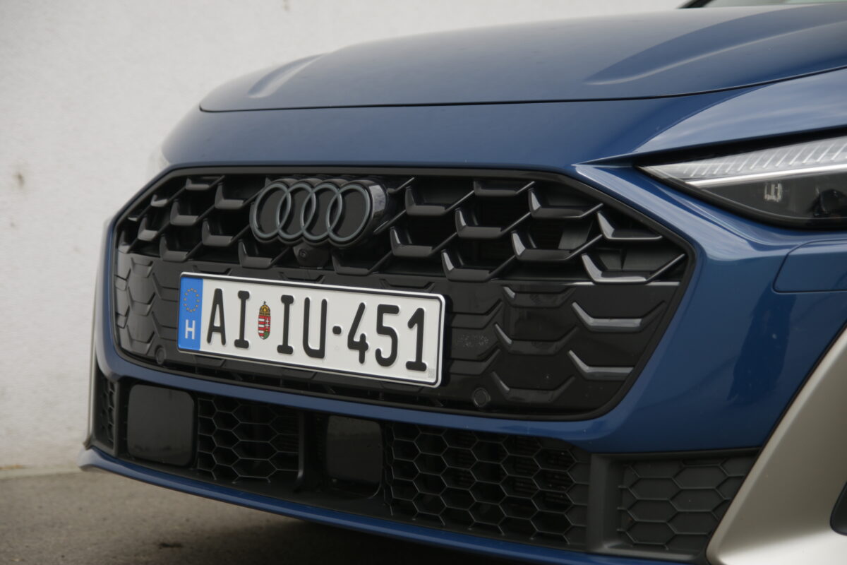 A hűtőrács lekerekített sarkokkal is egyértelműen hozza az Audi tekintélyt