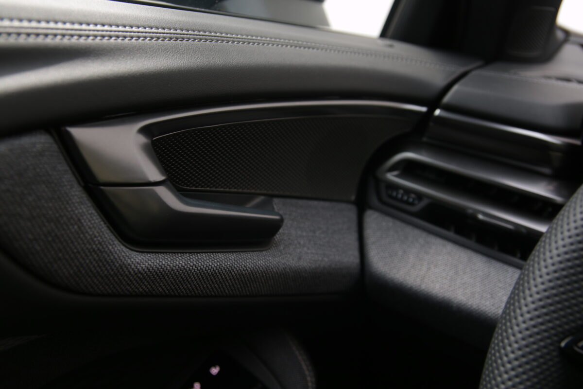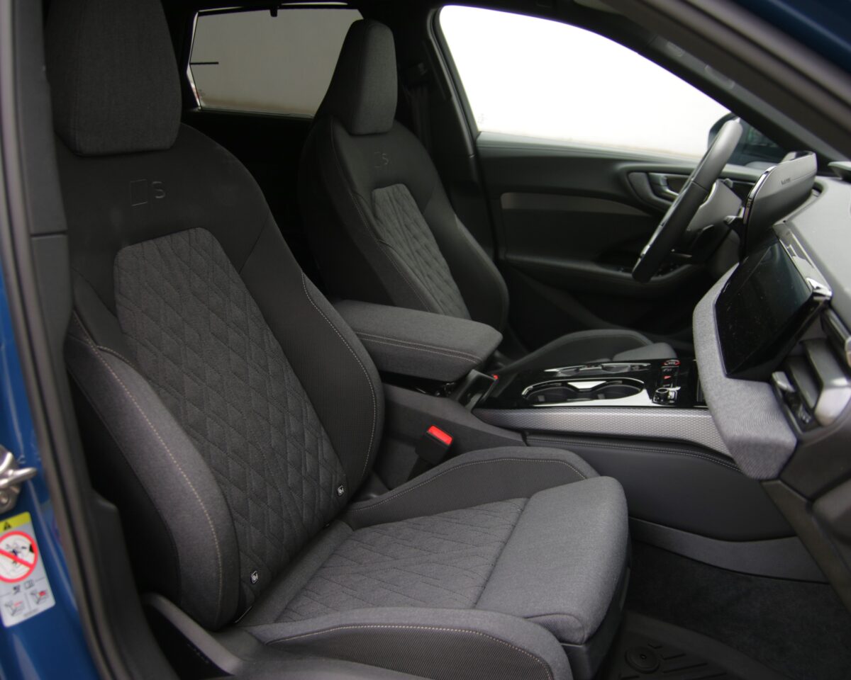 Ugyanígy tagadhatatlan, hogy anyagminőség terén ezzel a modellel is visszalépett az Audi az elődökhöz képest, ám itt közel sem annyira feltűnő az olcsóbb textúrák hadserege, mint mondjuk az elektromos A6 és Q6 esetében. A leglátványosabb előrelépés a nagyobb és drágább Audi modellekhez képest, hogy a kilincset és környékét sikerült ízlésesen megoldaniuk: nem kell vakdugót nézegetni az egyértelműen Volkswagenekből átemelt, olcsó kilincskereteken. Arányaiban nagyobb területet foglal el a puha műbőr is a műszerfalon, illetve meglepően jó minőségűnek hatnak a szövetbetétek is az ajtókárpitokon.
