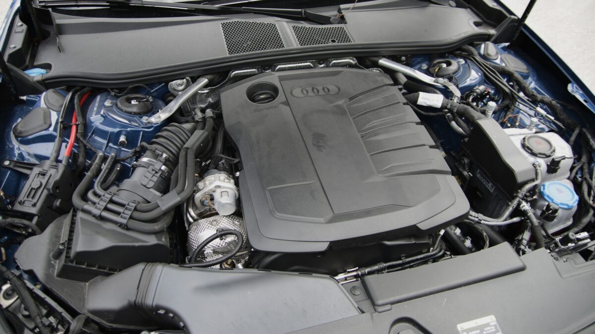 Amiért azonban különösen fontos ez a konkrét A5 tesztautó, azt nem a csomagtartójában, hanem az orrában kell keresni. A 2,0 literes, közös nyomócsöves dízelmotor ugyanis jelenleg a belépő, négyhengeres TDI a kínálatban, amely minden eddigi A4 generáció legnépszerűbb erőforrás-kategóriája volt. Ez persze ismét érthető, hiszen egy üzletembereknek és középvezetőknek tervezett, elsősorban a német autópályára szánt modellről beszélünk. Teljesítmény terén a 340 newtonméteres csúcsnyomaték meghatározóbb, mint a 204 lóerő, a lágy hibrid rendszer pedig alig észrevehetően üzemel. Ám hiába a 48 voltos rásegítő rendszer, egy dízel továbbra sem városi cirkálásra való, Budapesten a dugóban a 10 litert közelíteni sem akadály vele, országúton azonban még 5 liter alá is befér, míg autópályán valamelyest 6 liter felett tudtam vele szabályosan közlekedni. Erre pedig a legelső A4-es 131 lóerős, 1,9 literes erőforrása is képes volt hasonló dinamika mellett: ne feledjük viszont, hogy az első A4 nagyjából 400 kilogrammal könnyebb ennél az A5-nél. A pontos, 100 kilométerre vetített fogyasztásom a teszt végére 6,5 liter lett a tankolás alapján.