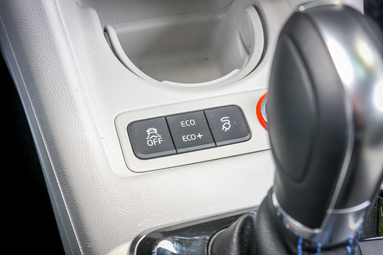 Váltónak látszó menetmód-választó. ha úgy tetszik, egyfokozatú automata, s kuplungolni nem kell, mert tengelykapcsoló nincs. B, mint brake állásban változtatható a motorfék, s a rekuperáció mértéke. Van városi ráfutásgátló, s ha igazán takarékosak szeretnénk lenni, Normalból kapcsoljunk át Eco, sőt Eco+ üzemmódba