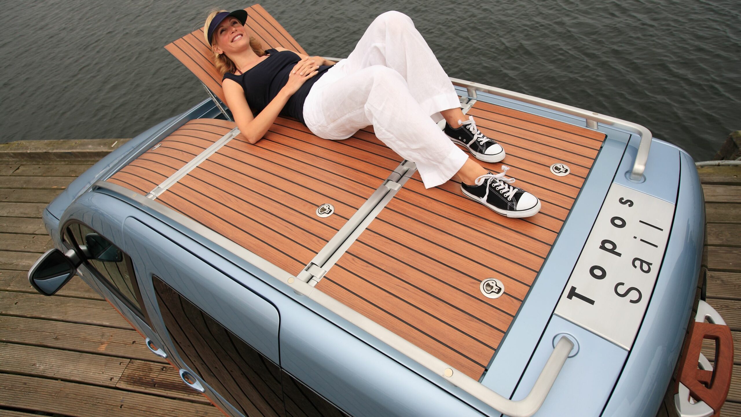 Zord időjárásban talán kevésbé, a melegben és a napfényben viszont annál inkább hasznos társ volt a 2008-as Caddy ToposSail. Az 1950-es évek motorcsónakjaiból inspirálódva fabetétek díszítették a jármű tetejét, ahova egy titkos átjárón keresztül juthatott fel a barnulni vágyó utas. A pihenőrészt ráadásul párnákkal és napellenzőkkel is ellátták, a stílusos összképhez pedig sötétített ablakok és alumínium díszbetétek járultak még hozzá.