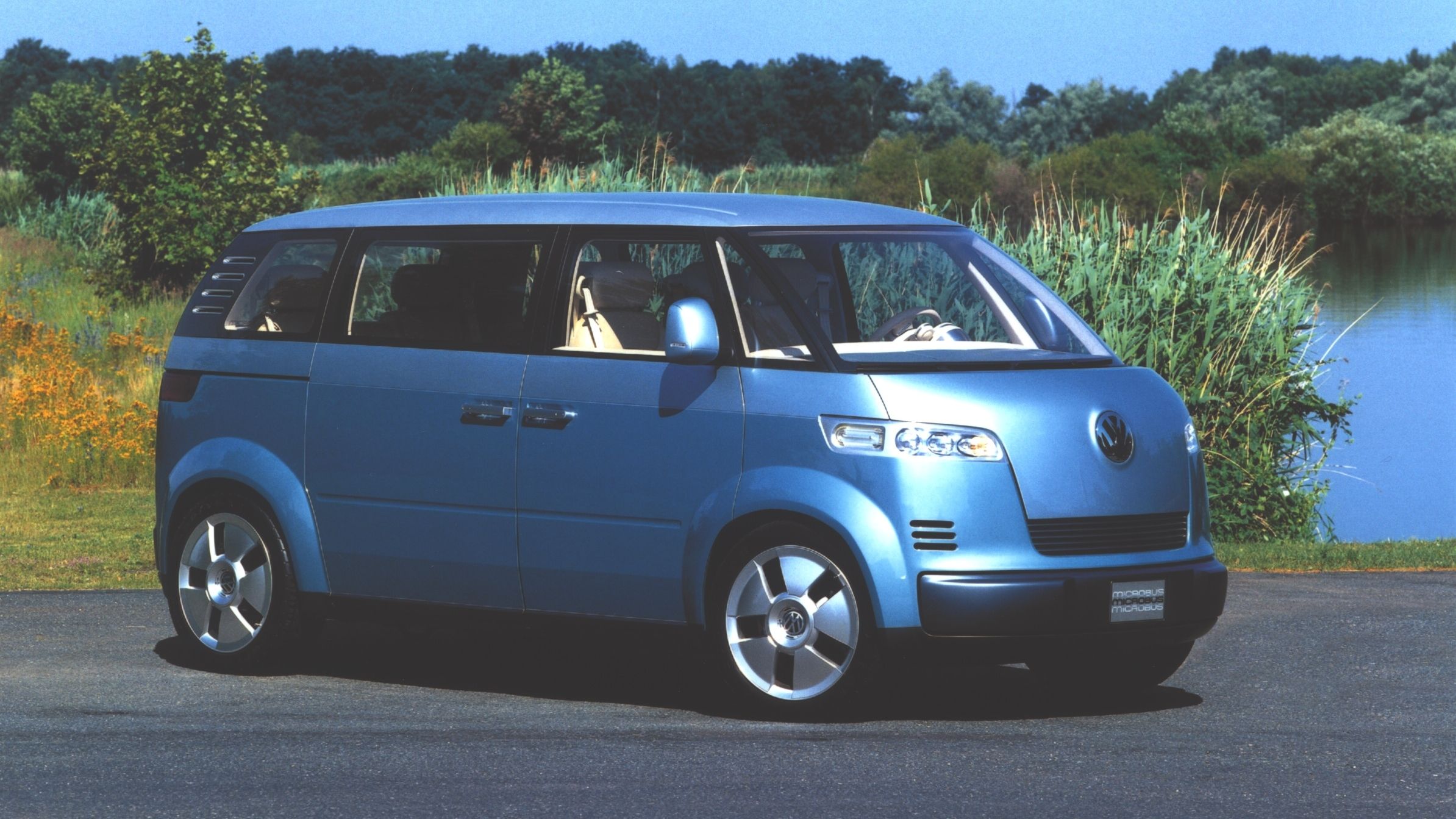 Nagyon készül a Volkswagen az első teljesen elektromos furgonjának, az ID. Buzznak a hamarosan esedékes bemutatójára. Ilyen és ehhez hasonló haszongépjárművek azonban már korábban is léteztek, legalábbis koncepcióautó formájában. Kétségkívül a 2001-es Microbus Concept hasonlít leginkább a jövőbeli akkumulátoros kisbuszra, ami nem véltetlen, hiszen mindkettővel a legendás Bullit idézi fel a márka. Igaz, hogy majdnem húsz éve még nem az elektromosítás volt a fő téma, és így egy 3,2 literes V6-os motor hajtotta a járművet, de a formatervben egyértelműen felfedezhetők az ikonikus vonalak. Életrevalóságát technológiai újításokkal biztosították, a digitális műszerblokk jövőbemutató volt, a tolatókamera pedig az egyik leghasznosabb funkció az autóiparban. Sajnos sorozatgyártásba nem került, de 2011-ben és 2016-ban ennek mintájára készített a Volkswagen két további, a Bulli előtt tiszteletét tevő tanulmányt.