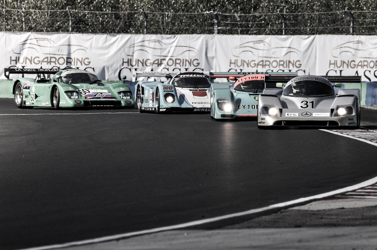 Ilyet korábban csak Le Mans-ban láthattak, most viszont hazánkba is elérkezett az időutazás. Élen a mára ikonná lett Mercedes-Benz C11, mögötte a nem kevésbé legenda Porsche 962