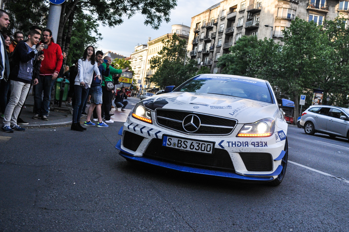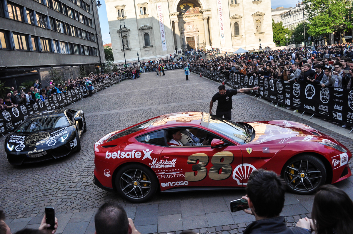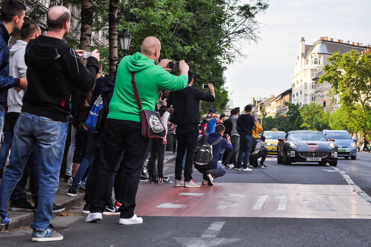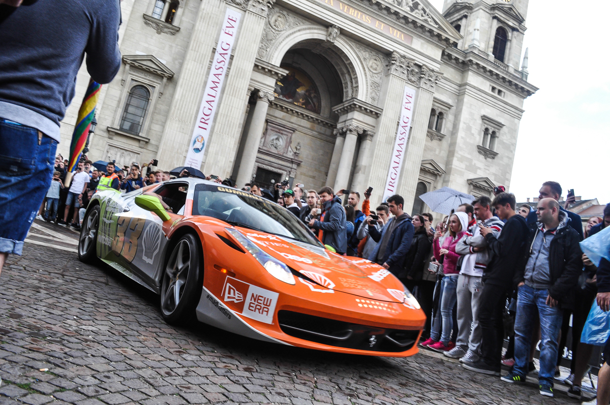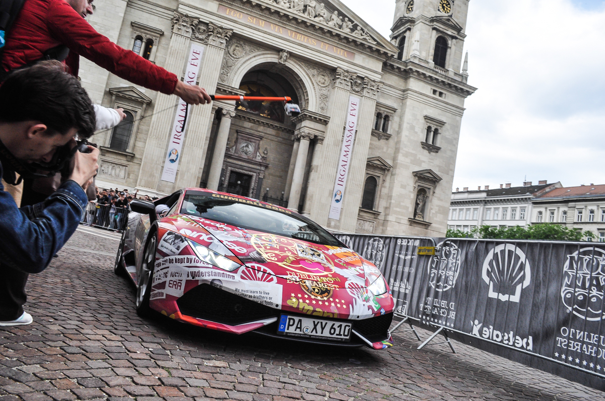 Annyira abszurd az egész, hogy már jó és köztudott, hogy az embereket vonzza, ami illegális. Ez pedig az, hiszen minden sebességkorlátot vagy KRESZ-szabályt semmibe vesznek. Németországban például csak egy bizonyos útvonalon mehettek, de fővárosunkban is volt gumiégetés, záróvonalon áthajtás, stb. Ami meglepett, hogy mégis Forma-1 versenyzők és komoly cégek adják nevüket hozzá. Amikor meglátjuk azt a tömeget, amit a Bazilika előtti térre is vonzottak, akkor megértjük, miért éri meg bárkinek támogatni ezt a ralit. A csapatok készülnek erre, komolyan veszik, rengeteg szerviz és kísérő autó tart velük. Ez is hihetetlen volt számomra. A nevezési díj 35 000 font, közel 14 millió forint, hogy az egyéb költségekről ne is beszéljünk. A versenyzők minden éjszakázós állomásukon buliznak egy nagyot, másnap mégis lenyomnak 1000 kilométert.