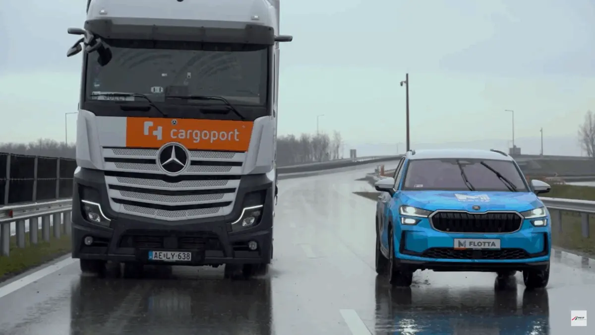 Amikor azt hiszed, hogy már elhaladtál a veszélyes jármű mellett: na, éppen ilyenkor lát a legkevésbé a kamion sofőrje (Fotó: Youtube.com/MKIF Zrt. – Az ország útja)