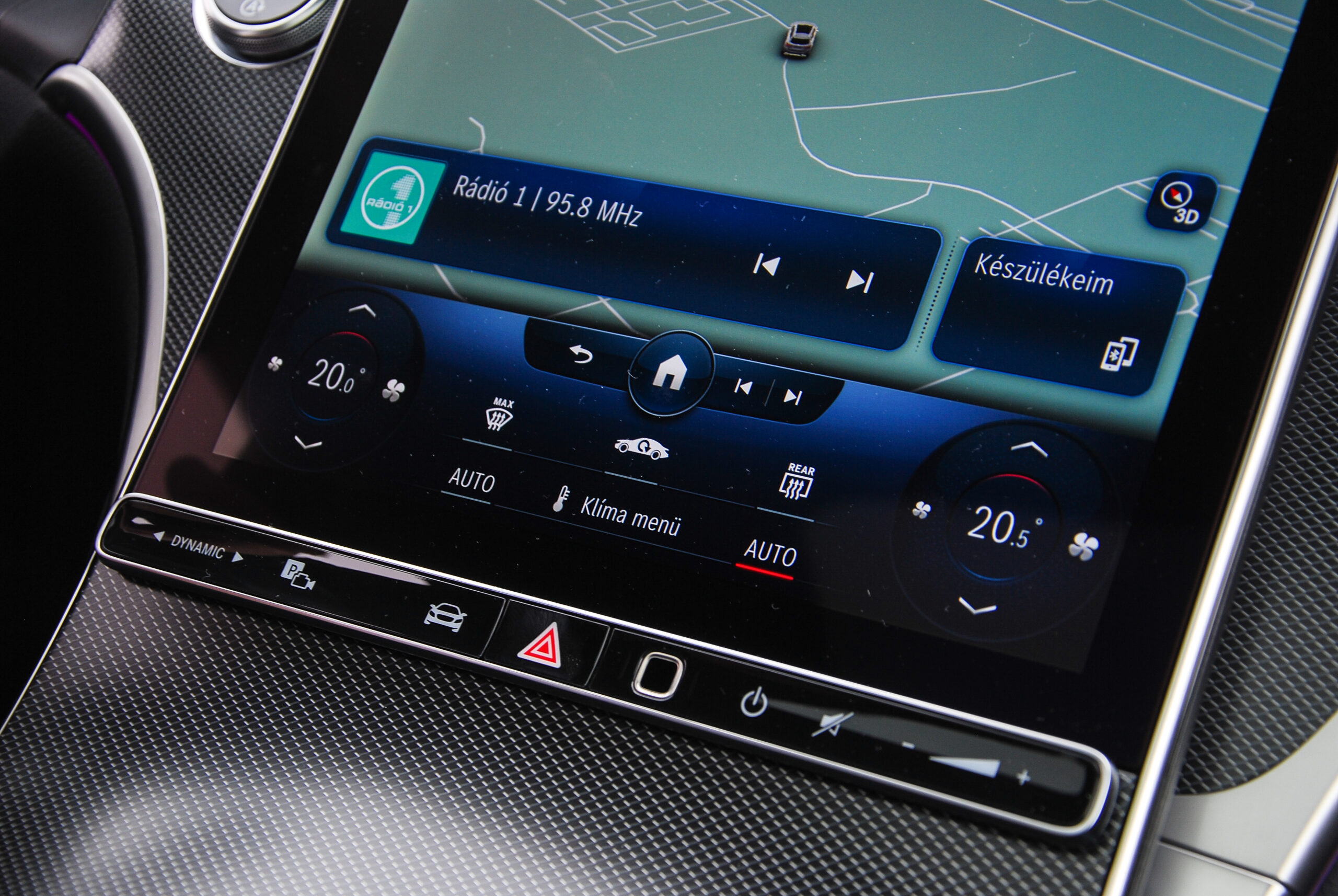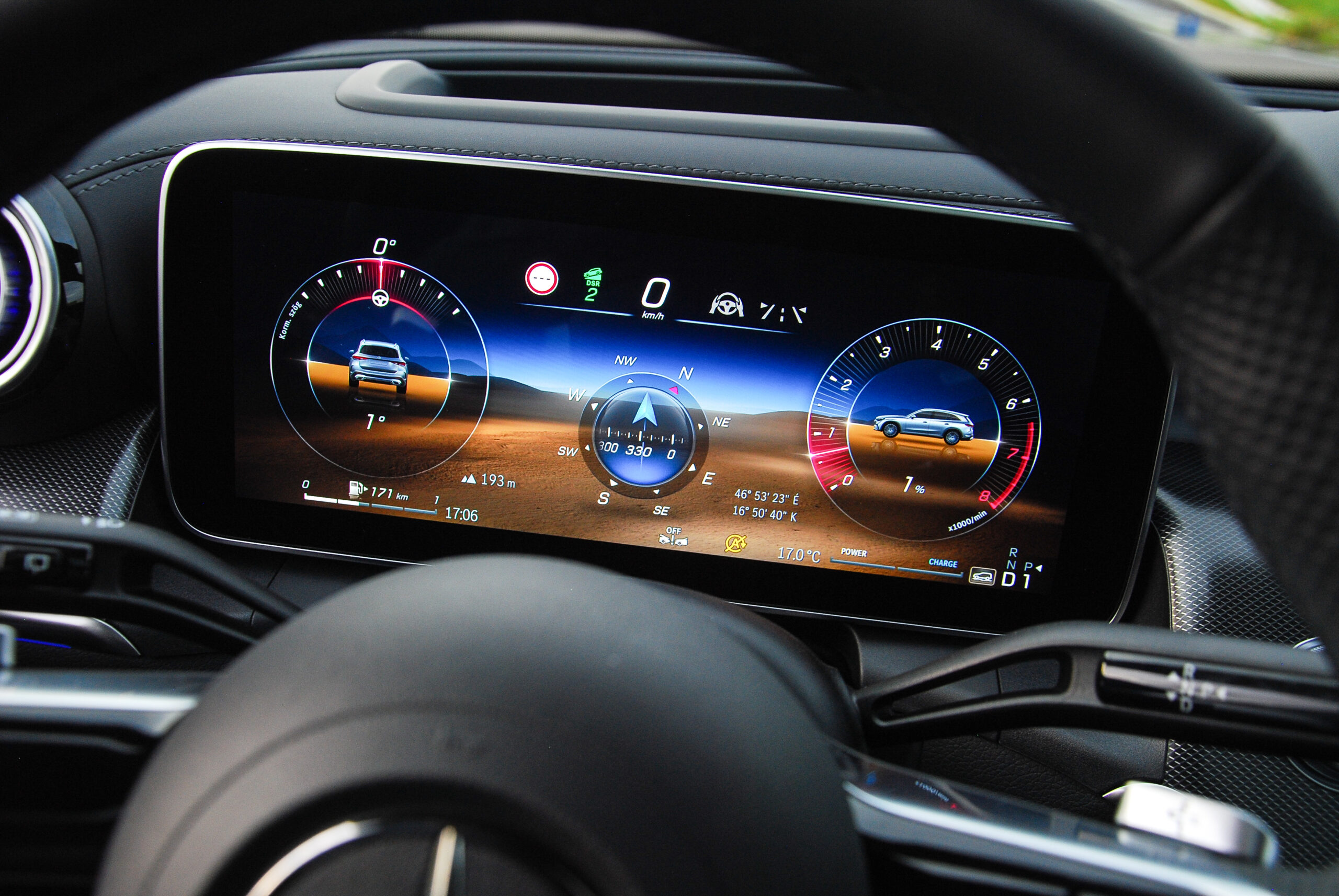 A Mercedestől megszokott, álló MBUX rendszer és a teljesen digitális kombinált műszeregység a várt összképet hozza