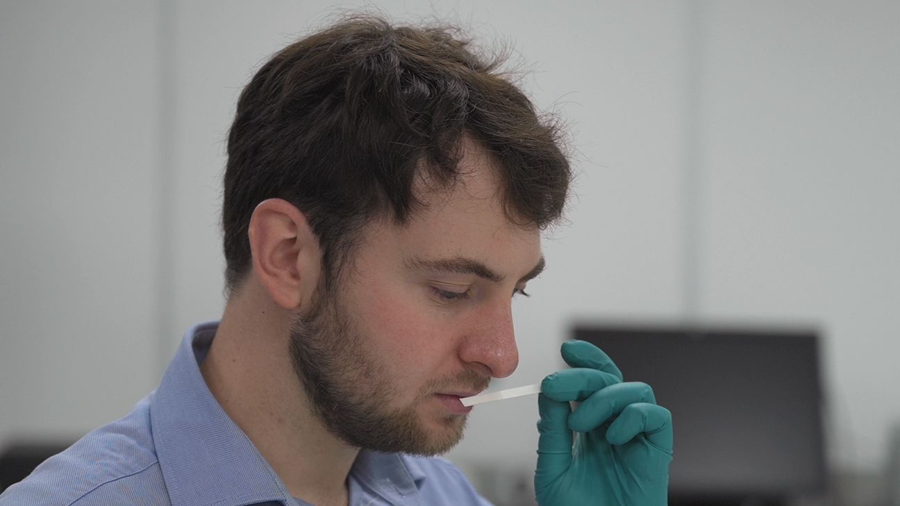 Peter (és beosztottjai) munkája sokkal széleskörűbb, mint gondolnánk. A Nissan új modelljeinek fejlesztésénél már a kezdeti szakaszokban szükség van szakértelmére, mert ő értékeli azokat a beltéri anyagokat, melyeket a többi részleg kiválasztott. Csak akkor kerülhetnek bele a sorozatgyártású verzióba, ha az ő orrán is átmennek. Itt nem csak a bőrhuzatokra vagy a díszbetétekre kell gondolni (Peter egyébként érzi a különbséget igazi és műbőr illata között is), de az olyan láthatatlan anyagokra is, mint például a ragasztók. Sőt, nem elég, hogy ezek egyenként milyen szagélményt keltenek, mindezek együttes kombinációjának is kellemes illatúnak kell lennie. Van úgy, hogy már csak az összhatásnál derül ki, valami nem stimmel - ilyenkor pedig Peternek kell - szó szerint - kiszaglásznia, hol a hiba. Persze nem csak kritizál, ha hibás anyagot talál, ő kutat fel helyettesítő anyagokat is. Munkáját még tovább bonyolítja, hogy az autót számos környezeti hatás éri, neki pedig biztosra kell mennie, hogy az adott üléshuzat például hidegben és melegben is egyaránt kényezteti-e az orrunkat. Az USA-ban és Japánban is foglalkoztat a Nissan hozzá hasonló szagszakértőket, így garantálják, hogy bárhol is kerüljön értékesítésre egy új Nissan, az mindenhol ugyanazt a minőségi újautó-illatot nyújtja, amit a gyártó ügyfelei elvárnak.