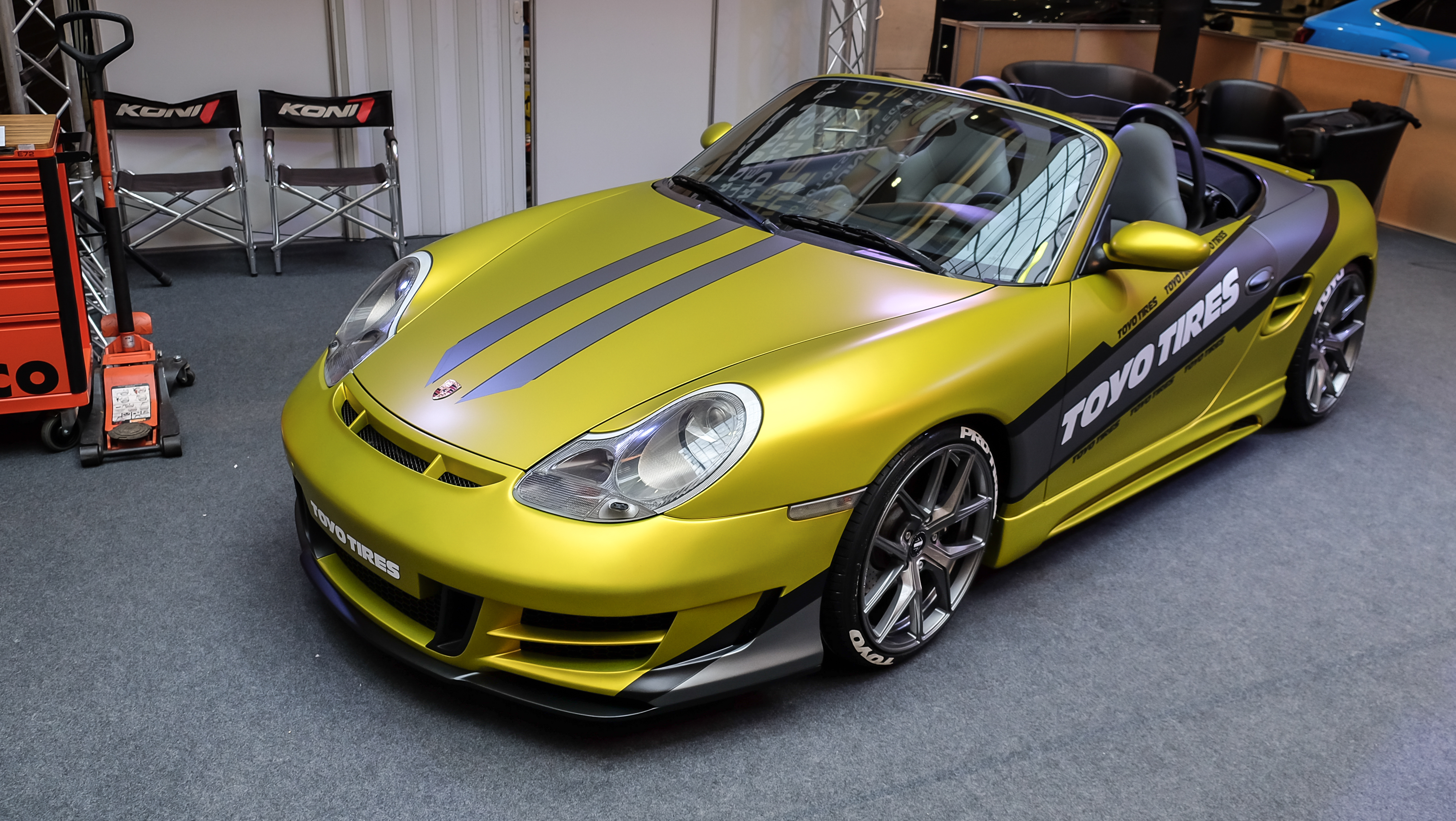 Az autó életkorát tekintve nem fiatal, ám a formák és a technika lényegében örökzöld modellt alkot. A legendás gyártó népszerű kétülésese még ma is kívánatos, az átalakításokkal pedig fiatalítottak is rajta, amennyit lehetett. Egyedi body kittel szerelték, amit a GT2-es Porschék stílusát idézik, valamint egyedi dekort is kapott, ahogy már pár éve, úgy idén sem fényezés, hanem minőségi fóliázás formájában. Kicserélték a fényszóróit és a hátsó lámpáit, friss fejlesztésű Momo felniket és Toyo abroncsokat kapott, 3 centit ültettek a futóművén, luggatott és hűtött féktárcsákat kapott, valamint futómű felújítást.